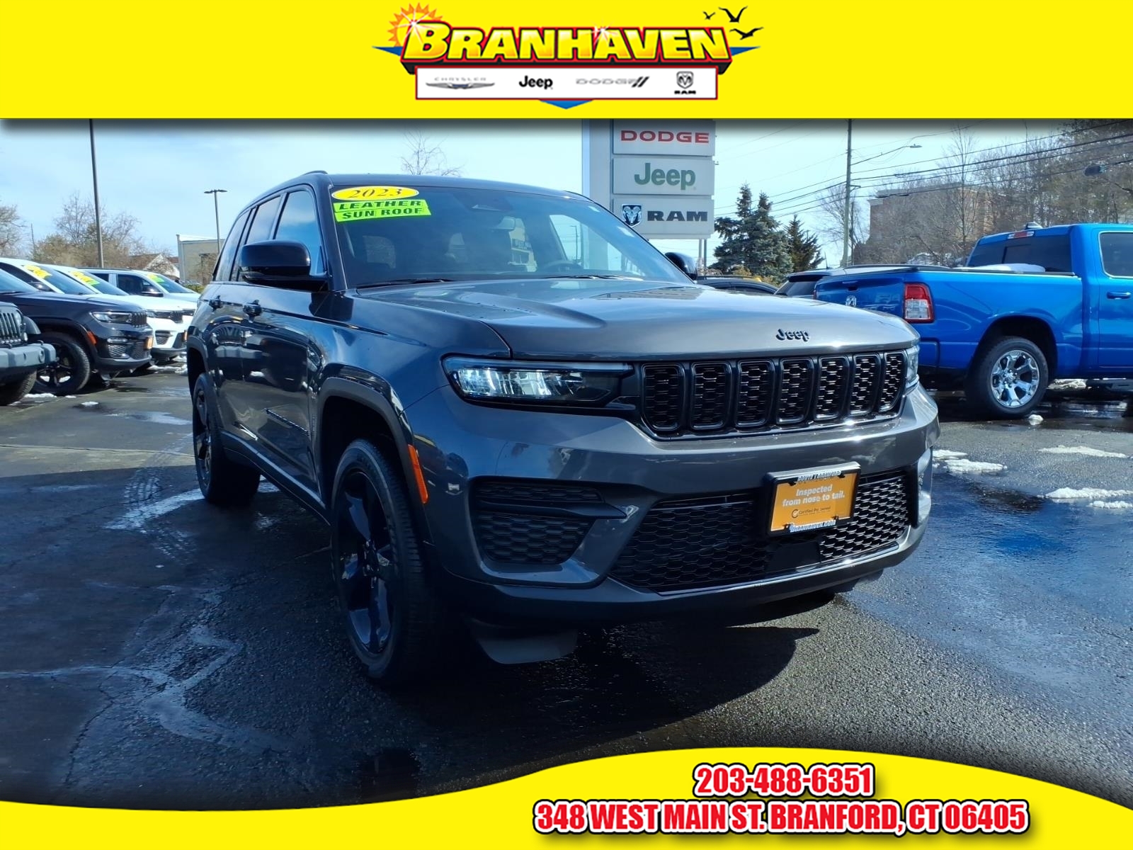 Step into the future of automotive excellence with the 2023 Jeep Grand Cherokee Limited! This brand-new, zero-mileage stunner is not just a vehicle, it's a statement of style and sophistication. It's where rugged capability meets modern luxury, and it's waiting for you. The exterior of this Grand Cherokee Limited is dressed in a sleek, sophisticated black. The color is as deep as the night sky, giving the vehicle an imposing yet elegant presence. It's a color that demands respect and attention, and it's perfectly complemented by the interior's black leather upholstery. The seats are not just comfortable, they are a haven of relaxation, providing a level of comfort and luxury that is truly unmatched. Under the hood, you'll find the powerful Pentastar 3.6L V6 engine, boasting an impressive 293 horsepower and 260 ft-lbs of torque. This engine is designed to deliver performance that is as smooth as it is powerful. Paired with an 8-Speed Shiftable Automatic transmission, you can expect a ride that is both smooth and responsive, whether you're cruising down the highway or tackling off-road trails. This Grand Cherokee Limited is not just about power and luxury, it's also about safety and convenience. It's packed with state-of-the-art features designed to make your drive safer and more enjoyable. The Automatic Emergency Braking and Adaptive Stop and Go Cruise Control systems provide an extra layer of safety, while the Lane Keeping Assist feature helps ensure you always stay in your lane. The vehicle also comes with a Navigation System that uses a hard drive, providing reliable and accurate directions to your destination. The Blind Spot Safety Sensor and Rear Cross Traffic Alert systems provide additional peace of mind, alerting you to potential hazards you might not see. As for comfort and convenience, this Grand Cherokee Limited offers a heated steering wheel for those chilly mornings, and a Wi-Fi hotspot to keep you connected wherever you go. The Smartphone Integration feature supports Android Auto, allowing you to easily access your favorite apps and features from your phone. The 2023 Jeep Grand Cherokee Limited also comes with painted aluminum alloy wheels, adding a touch of elegance to its rugged appeal. And let's not forget the dual front knee airbags, a testament to Jeep's commitment to safety. In terms of warranty, please click on the Warranty Tab for detailed information. In conclusion, this 2023 Jeep Grand Cherokee Limited is not just a vehicle, it's a lifestyle. It's a symbol of power, luxury, and advanced technology. It's a vehicle that commands respect and delivers performance. It's a vehicle that is waiting for you. So why wait? Step into the future of automotive excellence today with the 2023 Jeep Grand Cherokee Limited. It's more than just a vehicle, it's an experience. And it's an experience you don't want to miss.