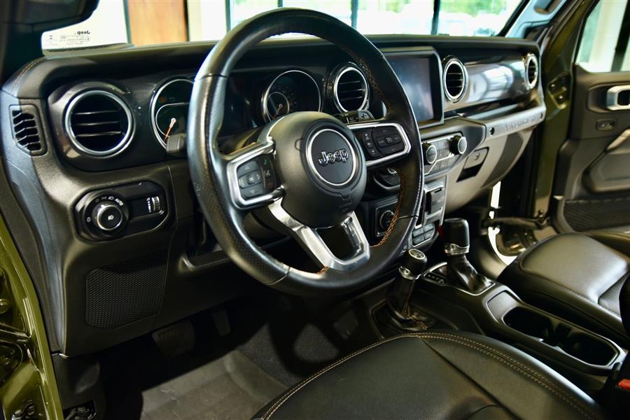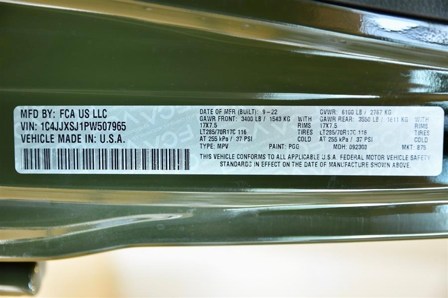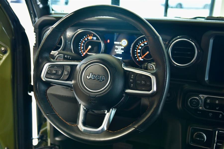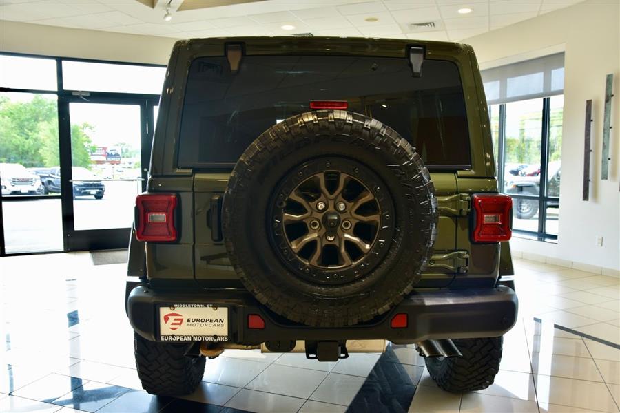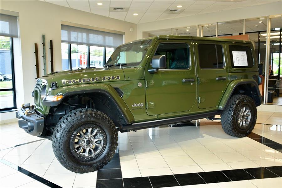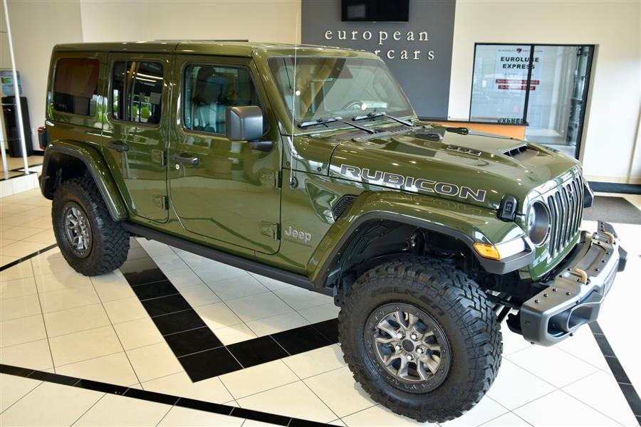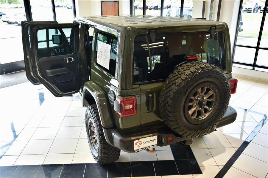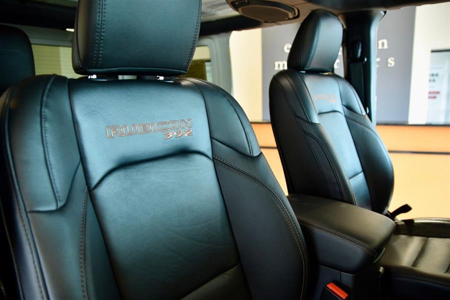 Introducing the 2023 Jeep Wrangler Rubicon 392, a stunning fusion of rugged capability and modern technology, now available as a used SUV that will elevate your off-road adventures and daily drives alike. With only 14,423 miles on the clock, this exceptional vehicle offers a commanding presence in Sarge Green Clear Coat, complemented by a sleek black interior. Under the hood lies a mighty 6.4-liter V8 engine producing an impressive 470 horsepower and 470 lb-ft of torque, delivering exhilarating performance with gasoline efficiency of 13 mpg city and 17 mpg highway. This vehicle boasts a sturdy 4X4 drive train, four doors, and seating for five, making it versatile for both family outings and trail blazing. Equipped with advanced features such as adaptive cruise control, Apple CarPlay, a backup camera, blind spot monitor, Bluetooth connectivity, collision warning, cross-traffic alert, heated seats, keyless entry, navigation, premium audio, push start, satellite radio readiness, and a WiFi hotspot, this Wrangler combines technology, comfort, and off-road prowess to meet your every need. The 2023 Jeep Wrangler Safety and Security Features include essential systems designed to keep you protected on and off the road. Rear parking sensors help you maneuver in tight spaces with confidence, while the four-wheel anti-lock braking system (ABS) offers enhanced stopping power during sudden stops. Emergency braking preparation provides additional safety, and anti-lockout power door locks ensure security when you need it most. The auto-locking feature on the power door locks adds peace of mind for vehicle security. For off-road adventures, hill ascent and descent assists are available, ensuring stable handling on uneven terrain. These safety and security features work seamlessly to provide a safe and secure driving experience, whether you're navigating city streets or venturing into the wilderness. 2023 Jeep Wrangler Entertainment and Technology Features The 2023 Jeep Wrangler Rubicon 392 is equipped with an impressive suite of entertainment and technology features that enhance your driving experience. SiriusXM Guardian compatibility allows smart device app integration for remote vehicle management and safety alerts. Hands-free phone call functionality,voice operated,keeps you connected without distraction, while a voice-operated HD radio offers crystal-clear audio. The infotainment system boasts an 8.4-inch touchscreen display, supported by an impressive 552-watt amplifier and eight speakers, including a dedicated subwoofer for rich sound quality. Real-time traffic data ensures your navigation remains current, making every journey smooth and enjoyable. 2023 Jeep Wrangler Performance Features Designed for superior off-road capability, the 2023 Jeep Wrangler Rubicon 392 features a part-time four-wheel drive system with an on-demand setting, allowing you to switch between 2WD and 4WD for optimal traction. A locking front differential and rear differential provide added stability on challenging terrain, while cylinder deactivation helps improve efficiency during highway cruising. The tuned off-road suspension system absorbs shocks and enhances stability on rugged trails, and the manual high-low 4WD selector offers precise control over power distribution. These performance features work together to ensure this vehicle is ready to conquer any terrain while delivering a confident and exhilarating driving experience. <ul><li>Original MSRP $83,790</li><li>Trailer Tow Pkg.</li><li>Integrated Off Rd Camera</li><li>Gorilla Glass Windshield</li><li>17" Mud Terrain Tires</li></ul>