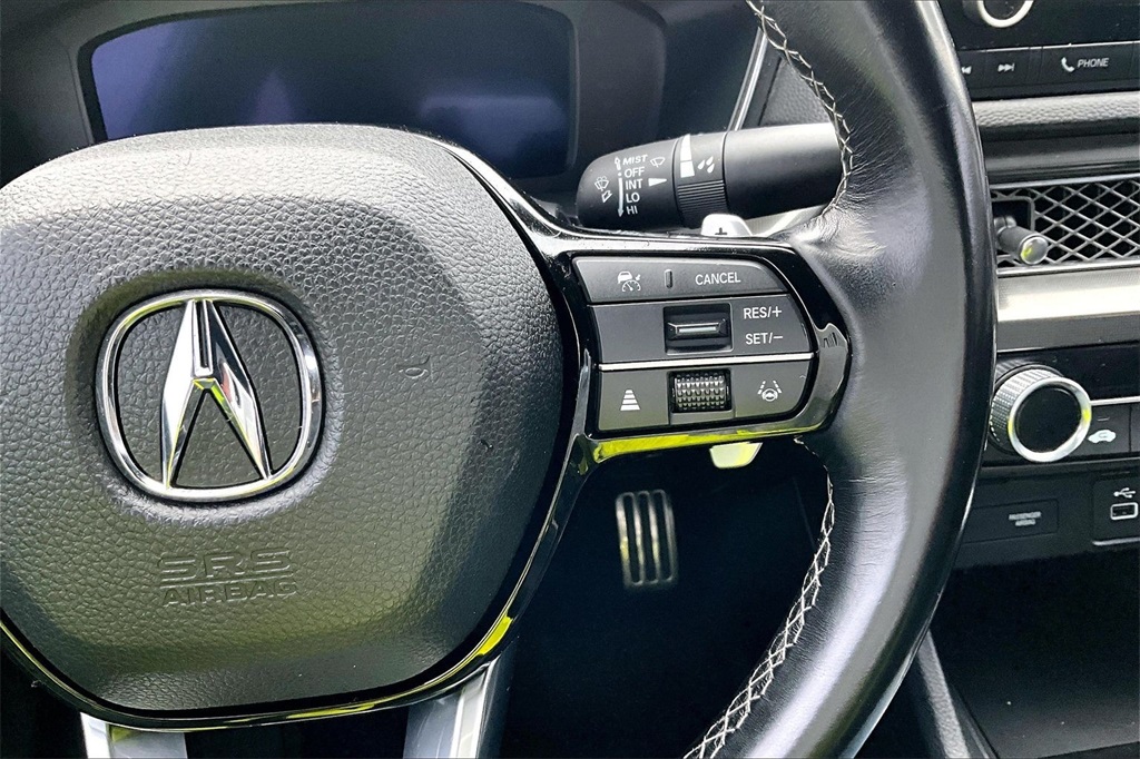 | 8 Speakers | | AM/FM radio | | Radio data system | | Radio: Acura Premium Audio System | | Air Conditioning | | Automatic temperature control | | Front dual zone A/C | | Rear window defroster | | Power driver seat | | Power steering | | Power windows | | Remote keyless entry | | Steering wheel mounted audio controls | | Four wheel independent suspension | | Speed-sensing steering | | Traction control | | 4-Wheel Disc Brakes | | ABS brakes | | Dual front impact airbags | | Dual front side impact airbags | | Front anti-roll bar | | Knee airbag | | Low tire pressure warning | | Occupant sensing airbag | | Overhead airbag | | Rear anti-roll bar | | Rear side impact airbag | | Power moonroof | | Brake assist | | Electronic Stability Control | | Lane departure: Lane Keeping Assist System (LKAS) active | | Auto High-beam Headlights | | Delay-off headlights | | Front fog lights | | Fully automatic headlights | | Panic alarm | | Security system | | Speed control | | Bumpers: body-color | | Heated door mirrors | | Power door mirrors | | Spoiler | | Apple CarPlay/Android Auto | | Auto-dimming Rear-View mirror | | Compass | | Driver door bin | | Driver vanity mirror | | Front reading lights | | Illuminated entry | | Leather Shift Knob | | Outside temperature display | | Overhead console | | Passenger vanity mirror | | Rear seat center armrest | | Tachometer | | Telescoping steering wheel | | Tilt steering wheel | | Trip computer | | Front Bucket Seats | | Front Center Armrest | | Heated Front Bucket Seats | | Heated front seats | | Leatherette-Trimmed Seating Surfaces | | Split folding rear seat | | Passenger door bin | | 18'' Alloy Wheels | | Alloy wheels | | Speed-Sensitive Wipers | | Variably intermittent wipers |