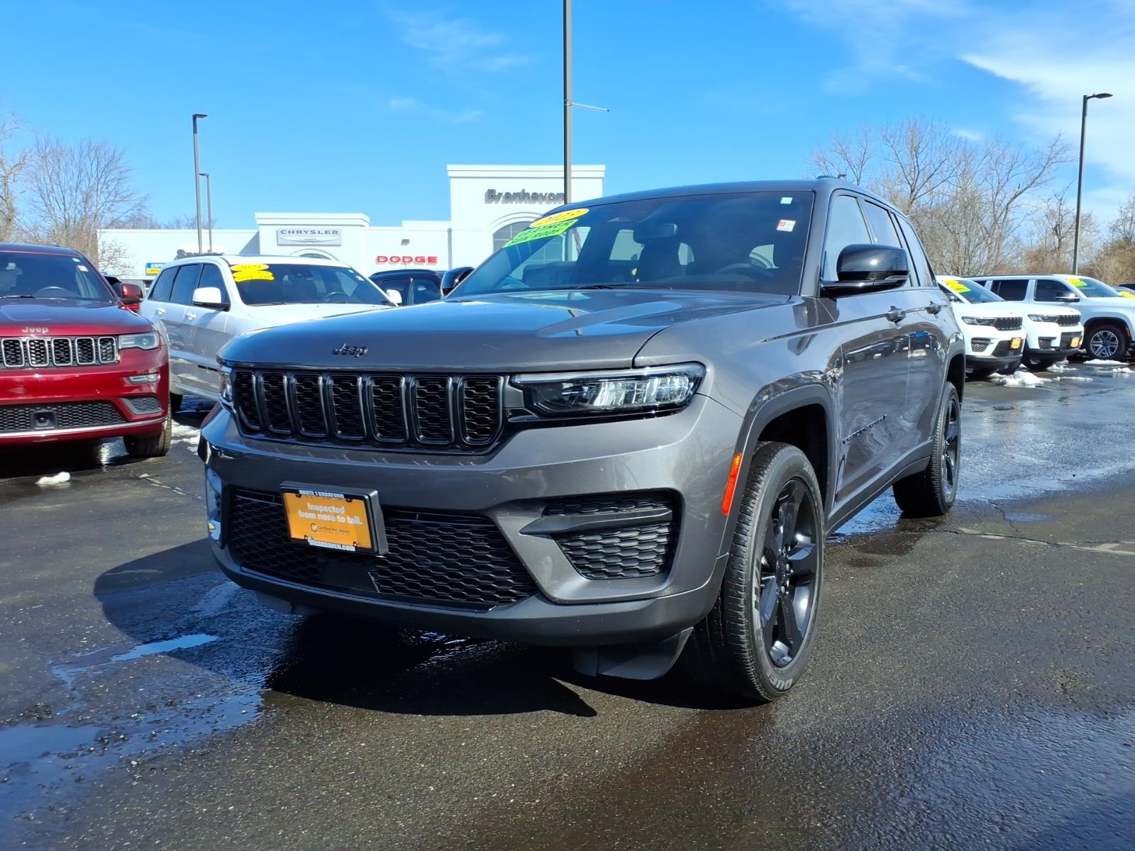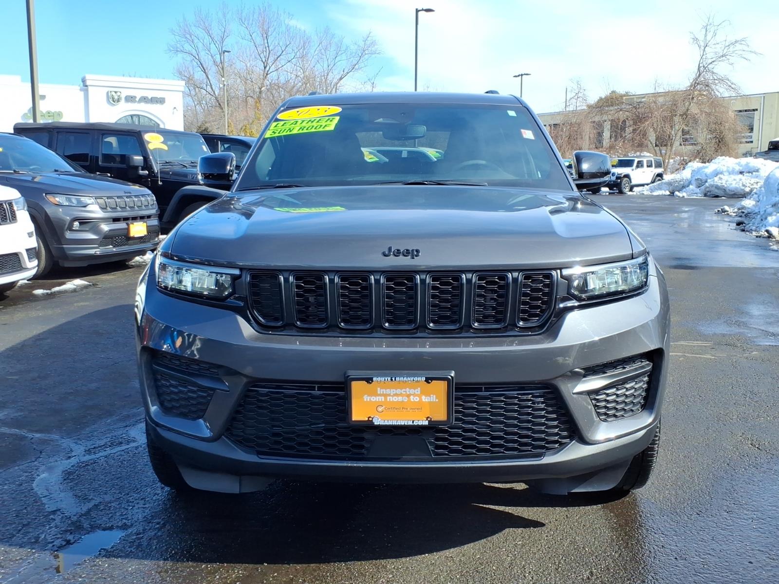 2023 Jeep Grand Cherokee Altitude ***CHRYSLER PRE OWNED CERTIFIED***, ***1 OWNER***, MANY EXTRAS, Grand Cherokee Altitude, 4D Sport Utility, 3.6L V6 24V VVT, 8-Speed Automatic, 4WD, Baltic Gray Metallic Clearcoat, Global Black Leather Seats, 115-Volt Auxiliary Power Outlet, 3.45 Rear Axle Ratio, 4-Wheel Disc Brakes, 6 Speakers, ABS brakes, Air Conditioning, Alloy wheels, Altitude Appearance Package, Anti-whiplash front head restraints, Automatic temperature control, Black Headliner, Brake assist, Capri Leatherette Seats w/Suede, Compass, Delay-off headlights, Delete Laredo Badge, Driver door bin, Driver vanity mirror, Dual front impact airbags, Dual front side impact airbags, Electronic Stability Control, Four wheel independent suspension, Front anti-roll bar, Front Bucket Seats, Front dual zone A/C, Front reading lights, Fully automatic headlights, Gloss Black Exterior Accents, Gloss Black Roof Rails, Heated door mirrors, Heated front seats, Heated steering wheel, Illuminated entry, Knee airbag, Low tire pressure warning, Occupant sensing airbag, Outside temperature display, Overhead airbag, Overhead console, Panic alarm, ParkView Rear Back-Up Camera, Passenger door bin, Passenger vanity mirror, Power door mirrors, Power driver seat, Power Liftgate, Power steering, Power Sunroof, Power windows, Quick Order Package 23B Altitude, Radio data system, Radio: Uconnect 5 w/8.4Flush Display, Rain-Sensing Windshield Wipers, Rear anti-roll bar, Rear reading lights, Rear window defroster, Rear window wiper, Remote keyless entry, Remote Start System, Secondary Active Grille Shutters, Security system, Selectable Tire Fill Alert, Speed control, Speed-Sensitive Wipers, Split folding rear seat, Spoiler, Steering wheel mounted audio controls, Tachometer, Telescoping steering wheel, Tilt steering wheel, Traction control, Trip computer, Variably intermittent wipers, Voltmeter, Wheels: 20x 8.0Gloss Black Aluminum, Wireless Charging Pad. Odometer is 939 miles below market average! 19/26 City/Highway MPG FCA US LLC Certified Pre-Owned Details: * Roadside Assistance * Limited Warranty: 3 Month/3,000 Mile (whichever comes first) after new car warranty expires or from certified purchase date * Vehicles Up to 75,000 Miles and/or 5 Model Years. 24-Hour Towing & Roadside Assistance, Car Rental Allowance, CARFAX® Vehicle History ReportTM and an Introductory 3-month Subscription to SiriusXM® Satellite Radio & Certified Warranty Upgrades * Vehicle History * Warranty Deductib