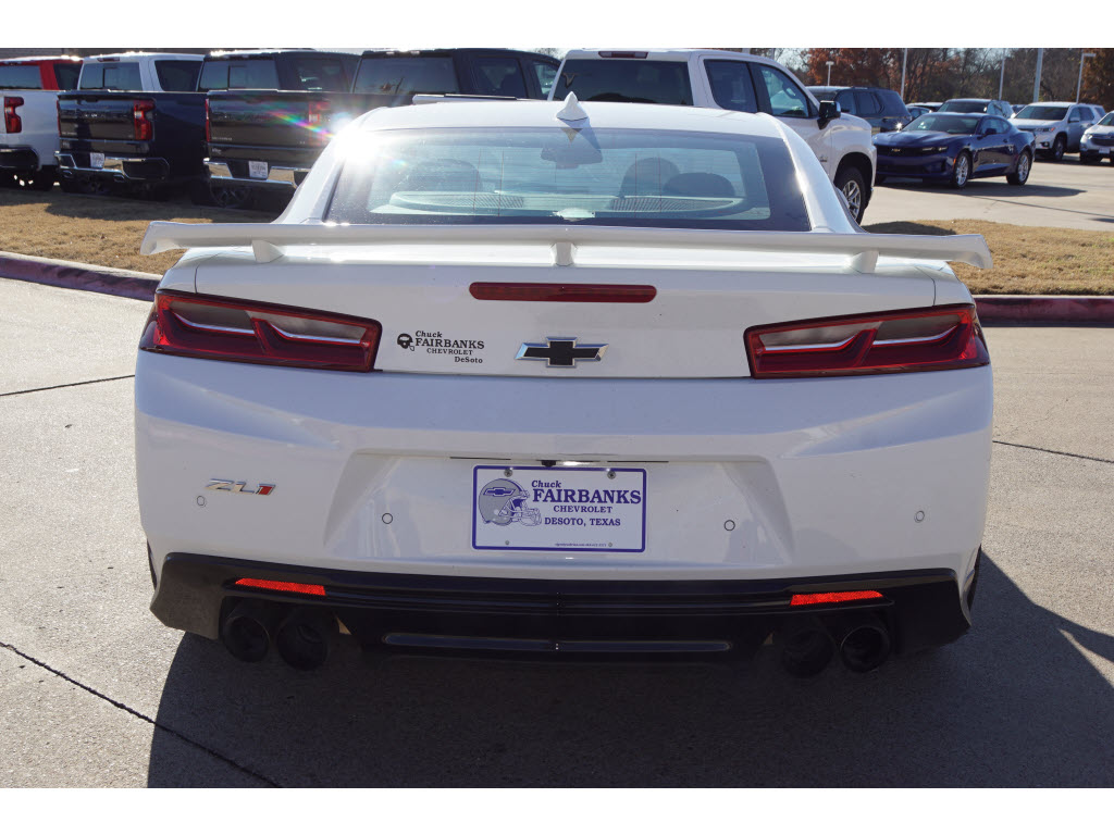 This 2018 Chevrolet Camaro ZL1 is a powerful and luxurious motorcar that is sure to turn heads. Boasting a 6.2 liter 8 cylinder engine with fuel injection, this car has low mileage and a summit white exterior with black accents. Inside, it features blind spot sensor, Apple Carplay ready, navigation, Bluetooth phone connectivity, and leather-trimmed seats. This car is sure to turn heads wherever it goes and offers peace of mind with its Carfax report available for review. Contact Details: Chuck Fairbanks Chevrolet, 629 Interstate 35 E, Desoto, TX, 75115, sales@chuckfairbankschevy.com, (972) 223-7611.