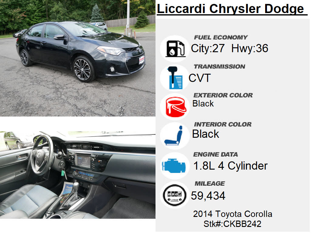 2014 Toyota Corolla S PLUS ] >>> SPORT PKG .    Power Tilt/Slide Moonroof, S PLUS PKG. Black AUTOMATIC 4D Sedan 1.8L I4 DOHC Dual VVT-i FWD Clean CARFAX.