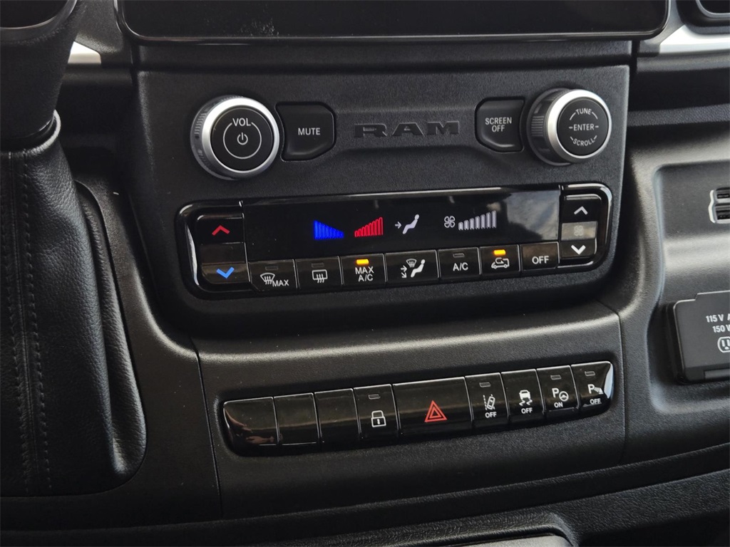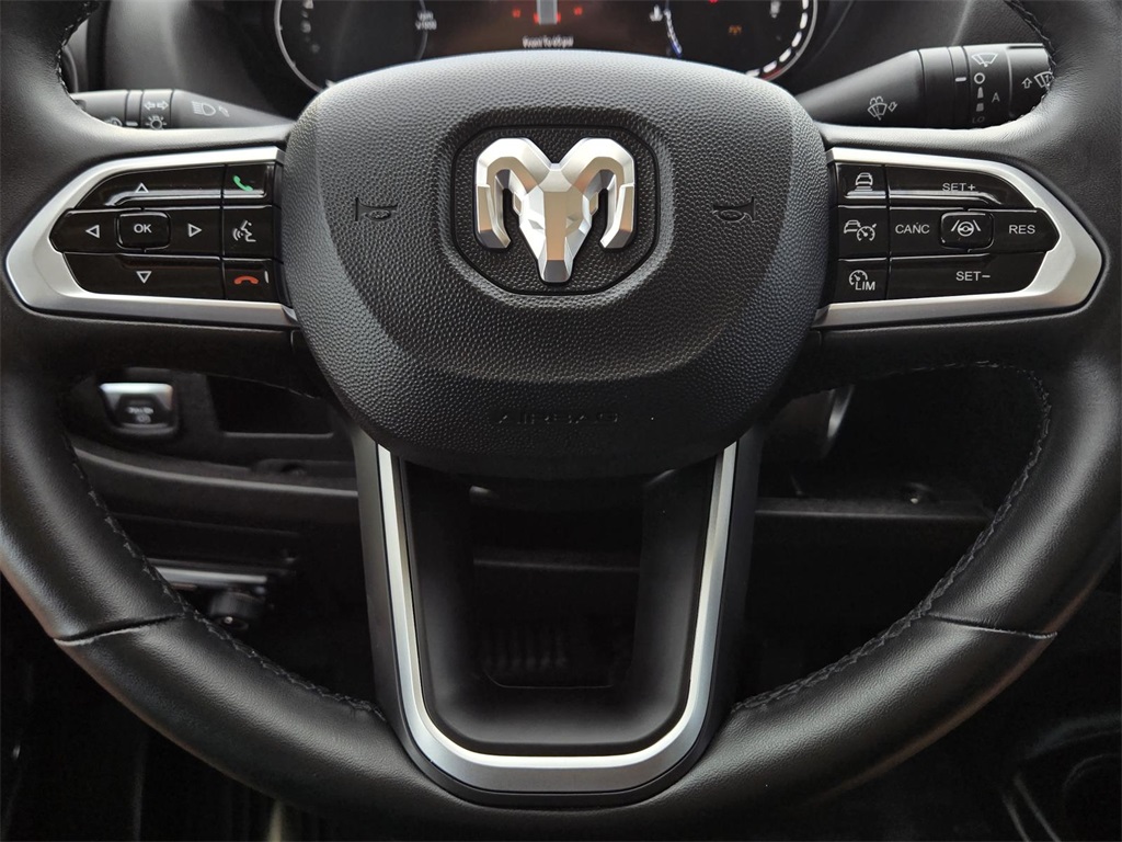| GPS Navigation | | Advanced Safety Group | | Black Appearance Package | | Quick Order Package 22H SLT+ | | Upfitter's Prep Package | | 4 Speakers | | AM/FM radio: SiriusXM | | HD Radio | | Integrated Voice Command w/Bluetooth | | Radio: Uconnect 5 Nav w/10.1'' Display | | SiriusXM w/360L | | Air Conditioning | | Rear window defroster | | Power steering | | Power windows | | Remote keyless entry | | Security Alarm | | Steering wheel mounted audio controls | | Heavy Duty Suspension | | Traction control | | 4-Wheel Disc Brakes | | ABS brakes | | Front anti-roll bar | | Front wheel independent suspension | | Low tire pressure warning | | Overhead airbag | | Passive Entry | | Rear anti-roll bar | | Remote Start System | | Blind Spot & Cross Path Detection | | Brake assist | | Electronic Stability Control | | ParkView Rear Back-Up Camera | | Automatic Headlamps | | Adaptive Cruise Control w/Stop & Go | | Intelligent Speed Assist (ISA) | | 100 Amp Battery | | 220 Amp Alternator | | Engine Block Heater | | Black Exterior Truck Badging | | Bodyside moldings | | Chrome Front Grille | | Cowl Aesthetic Cover | | Exterior Mirrors w/Heating Element | | Front License Plate Bracket | | LED Daytime Running Headlamps | | LED Reflector Headlamps | | Power Adjust Mirrors | | Power Folding/Heated Mirrors | | Power-Adjustable Convex Aux Mirrors | | RAM Grille Badge - Black | | Touring Suspension | | Turn signal indicator mirrors | | 115V Auxiliary Power Outlet | | 12V Rear Auxiliary Power Outlet | | Ambient LED Interior Lighting | | Apple CarPlay/Android Auto | | Auxiliary Switches | | Cluster 7'' TFT Color Display | | Digital Rearview Mirror w/Autodim | | Driver door bin | | Front reading lights | | Illuminated entry | | Instrument Panel Bright Bezels | | Lane Departure Warning Plus | | Outside temperature display | | Overhead console | | P&P Park & Unpark Assist System | | Park-Sense Front & Rear Park Assist | | Surround View Camera System | | Tachometer | | Telescoping steering wheel | | Traffic Sign Information | | Trip computer | | Upfitter Electronic Module (VSIM) | | Wireless Charging Pad | | 6-Way Manual Adjust Front Passenger Seat | | Black/Gray Seats | | Cloth Bucket Seats | | Driver's Seat Mounted Armrest | | Front Bucket Seats | | Manual 2-Way Driver Lumbar Adjust | | Manual 2-Way Passenger Lumbar Adjust | | Passenger Bucket Seat | | Passenger Seat Armrest | | Vinyl Bucket Seats | | Passenger door bin | | Rear Cargo LED Lamp | | Wheels: 16'' x 6.0'' Aluminum Painted Silver | | Wheels: 16'' x 6.0'' Painted Black Aluminum | | Rain Sensitive Windshield Wipers | | Variably intermittent wipers | | 4.08 Axle Ratio | | **APPLE CARPLAY/ ANDROID AUTO** | | No Accidents Reported To CARFAX |