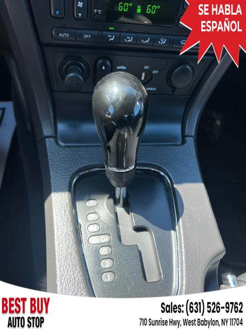 | ABS | | 4-Wheel Disc Brakes | | 5-Speed A/T | | 8 Cylinder Engine | | A/C | | A/T | | Adjustable Steering Wheel | | Security System | | AM/FM Stereo | | Automatic Headlights | | Power Outlet | | Bucket Seats | | CD Changer | | CD Player | | Climate Control | | Temporary Spare Tire | | Convertible Soft Top | | Cruise Control | | Driver Air Bag | | Driver Vanity Mirror | | Multi-Zone A/C | | Floor Mats | | Front Reading Lamps | | Gasoline Fuel | | Intermittent Wipers | | Keyless Entry | | Leather Seats | | Leather Steering Wheel | | Passenger Air Bag | | Passenger Air Bag On/Off Switch | | Passenger Vanity Mirror | | Power Door Locks | | Power Mirror(s) | | Power Driver Seat | | Power Passenger Seat | | Power Steering | | Power Windows | | Rear Defrost | | Rear Wheel Drive | | Remote Trunk Release | | Front Side Air Bag | | Steering Wheel Audio Controls | | Tires - Front Performance | | Tires - Rear Performance | | Variable Speed Intermittent Wipers | | Engine Immobilizer |