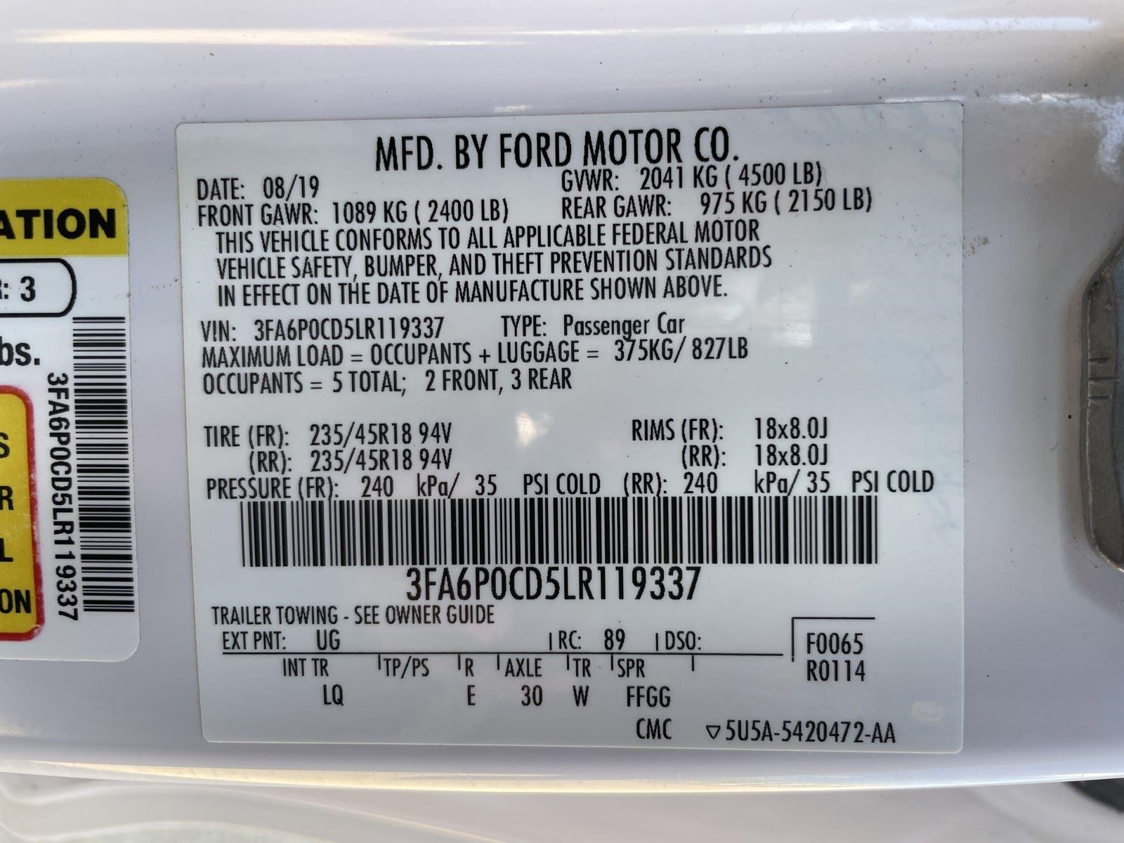 | 2020 Ford Fusion |