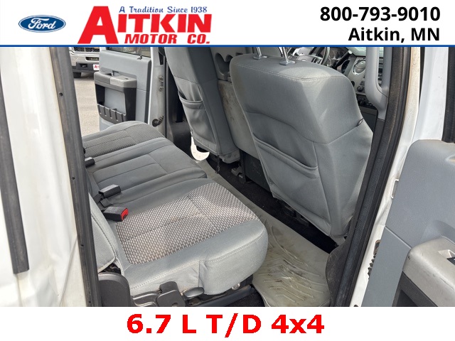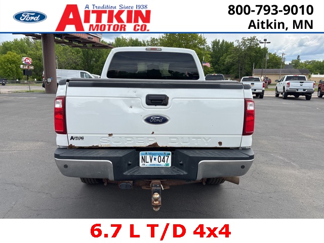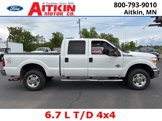 Aitkin Motor Company is very proud to offer this good-looking 2015 Ford F-250SD XLT in Oxford White, beautifully equipped with GVWR: 10,000 lb Payload Package, Order Code 603A, XLT Value Package (4.2'' LCD Productivity Screen, 6-Way Power Driver's Seat, Auto-Lamp/Rain-Lamp, Auto-Lock/Auto-Unlock, Electrochromic Mirror, Fog Lamps, Power Adjustable Pedals, Reverse Sensing System, and SecuriCode Keyless Entry Keypad (Driver-Side)), 3.31 Axle Ratio, 3.73 Axle Ratio, 4 Speakers, 4-Wheel Disc Brakes, 5'' Chrome Tubular Step Bars, ABS brakes, Air Conditioning, Alloy wheels, AM/FM radio: SiriusXM, Brake assist, Bumpers: chrome, CD player, Cloth 40/20/40 Split Bench Seat, Compass, Driver door bin, Driver vanity mirror, Dual front impact airbags, Dual front side impact airbags, Electronic Stability Control, Engine Block Heater, Extra Heavy-Duty 200-Amp Alternator, Front anti-roll bar, Front Center Armrest w/Storage, Front reading lights, Heated door mirrors, Illuminated entry, Low tire pressure warning, Outside temperature display, Overhead airbag, Overhead console, Panic alarm, Passenger door bin, Passenger vanity mirror, Power door mirrors, Power steering, Power windows, Radio data system, Radio: AM/FM Stereo/Single-CD/MP3 Player, Rapid-Heat Supplemental Cab Heater, Rear reading lights, Rear seat center armrest, Rear step bumper, Remote keyless entry, Roof Marker/Clearance Lamps, Security system, SiriusXM Satellite Radio, Speed control, Split folding rear seat, Steering wheel mounted audio controls, SYNC Voice Activated Communication & Entertainment, Tachometer, Telescoping steering wheel, Tilt steering wheel, Traction control, Turn signal indicator mirrors, Upfitter Switches (4), Variably intermittent wipers, and Wheels: 18'' Cast Aluminum!