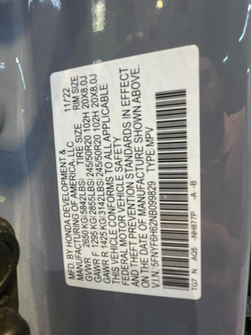 CARFAX One-Owner. Priced below KBB Fair Purchase Price! Odometer is 5274 miles below market average! 19/26 City/Highway MPG APRs as low as 2.99%!, AWD, 10 Speakers, 3rd row seats: split-bench, 4-Wheel Disc Brakes, 4.33 Axle Ratio, A/V remote: CabinControl, ABS brakes, Air Conditioning, Alloy wheels, AM/FM radio: SiriusXM, Apple CarPlay/Android Auto, Auto High-beam Headlights, Auto-dimming Rear-View mirror, Automatic temperature control, Blind Spot Information (BSI) System warning, Brake assist, Bumpers: body-color, Compass, Delay-off headlights, Driver door bin, Driver vanity mirror, Dual front impact airbags, Dual front side impact airbags, Electronic Stability Control, Emergency communication system: HondaLink, Exterior Parking Camera Rear, Forward collision: Collision Mitigation Braking System (CMBS) + FCW mitigation, Four wheel independent suspension, Front anti-roll bar, Front Bucket Seats, Front Center Armrest, Front dual zone A/C, Front fog lights, Front reading lights, Fully automatic headlights, Garage door transmitter: HomeLink, Headphones, Heated door mirrors, Heated Front Bucket Seats, Heated front seats, Heated rear seats, Illuminated entry, Lane departure: Lane Keeping Assist System (LKAS) active, Leather Seat Trim, Low tire pressure warning, Memory seat, Navigation system: Honda Satellite-Linked Navigation System, Occupant sensing airbag, Outside temperature display, Overhead airbag, Overhead console, Panic alarm, Passenger door bin, Passenger vanity mirror, Power door mirrors, Power driver seat, Power Liftgate, Power moonroof, Power passenger seat, Power steering, Power windows, Radio data system, Radio: 590-Watt Premium Audio System, Rear air conditioning, Rear anti-roll bar, Rear audio controls, Rear reading lights, Rear window defroster, Rear window wiper, Reclining 3rd row seat, Remote keyless entry, Roof rack: rails only, Security system, Speed control, Speed-sensing steering, Speed-Sensitive Wipers, Split folding rear seat, Spoiler, Steering wheel mounted audio controls, Tachometer, Telescoping steering wheel, Tilt steering wheel, Traction control, Trip computer, Turn signal indicator mirrors, Variably intermittent wipers, Wheels: 20" Machine-Finished Alloy, AWD.