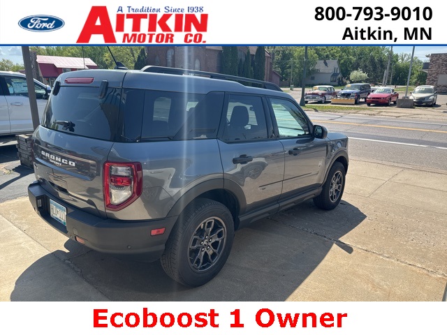 Aitkin Motor Company is proud to offer this wonderful 2021 Ford Bronco Sport Big Bend in Gray, beautifully equipped with Big Bend Package (96B) (Heated Front Bucket Seats, Leather-Wrapped Steering Wheel, Reverse Sensing System, and Wireless Charging Pad), Equipment Group 200A, 3.80 Axle Ratio, 4-Wheel Disc Brakes, 6 Speakers, ABS brakes, Air Conditioning, Alloy wheels, AM/FM radio: SiriusXM, AM/FM Stereo, Auto High-beam Headlights, Automatic temperature control, Brake assist, Compass, Delay-off headlights, Driver door bin, Driver vanity mirror, Dual front impact airbags, Dual front side impact airbags, Electronic Stability Control, Emergency communication system: SYNC 3 911 Assist, Engine Block Heater, Exterior Parking Camera Rear, Four wheel independent suspension, Front & Rear Floor Liners, Front anti-roll bar, Front Bucket Seats, Front Center Armrest, Front fog lights, Front License Plate Bracket, Front reading lights, Fully automatic headlights, Heated door mirrors, Illuminated entry, Knee airbag, Low tire pressure warning, Occupant sensing airbag, Outside temperature display, Overhead airbag, Overhead console, Panic alarm, Passenger door bin, Passenger vanity mirror, Power door mirrors, Power steering, Power windows, Radio data system, Rear anti-roll bar, Rear reading lights, Rear seat center armrest, Rear window defroster, Rear window wiper, Remote keyless entry, Roof rack: rails only, Security system, SiriusXM Radio, Speed control, Speed-sensing steering, Speed-Sensitive Wipers, Split folding rear seat, Steering wheel mounted audio controls, SYNC 3 Communications & Entertainment System, SYNC 3/Apple CarPlay/Android Auto, Tachometer, Telescoping steering wheel, Tilt steering wheel, Traction control, Trip computer, Unique Cloth Front Bucket Seats, Variably intermittent wipers, and Wheels: 17'' Carbonized Gray-Painted Aluminum!
