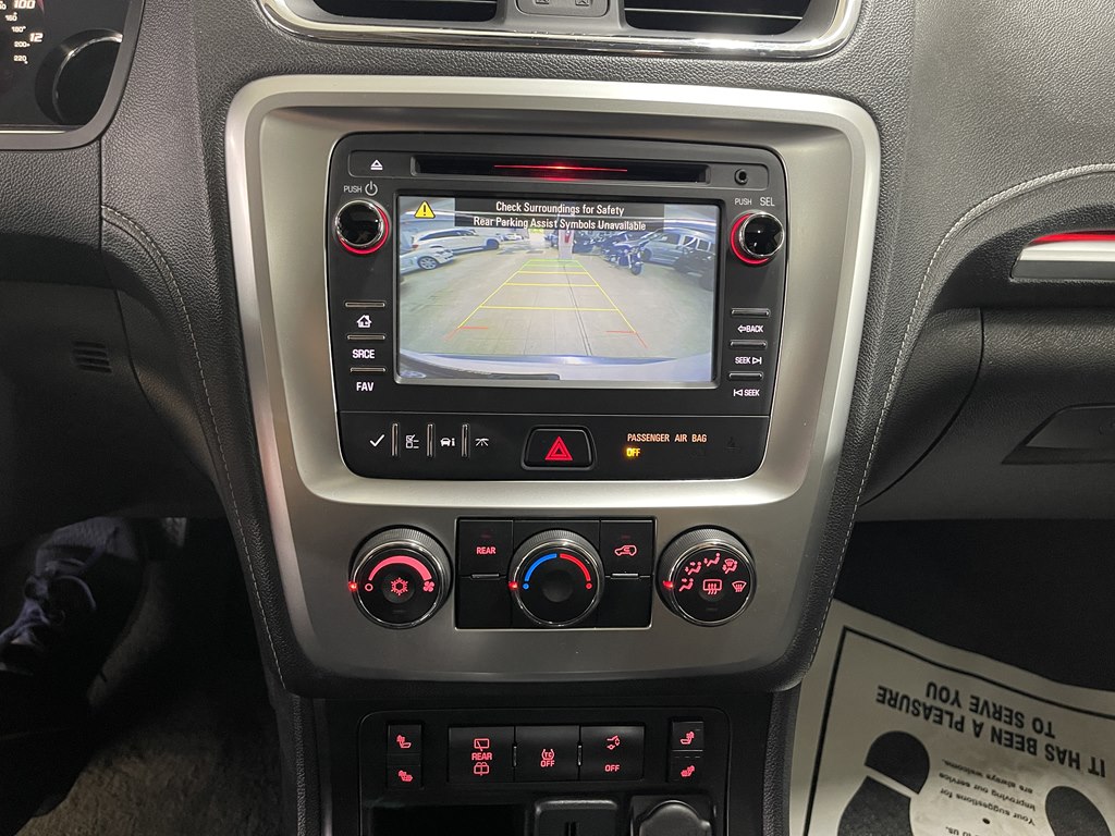 | Backup Camera | | Cloth Seats | | Remote Start | | Daytime Running Lights | | SiriusXM Equipped | | Touch Screen Audio | | CD Player | | Bluetooth | | Full Time AWD | | 4-Wheel ABS | | Latch System Child Seat Anchor | | Rear Parking Sensors | | Alarm | | Anti-Lockout Power locks | | Stability Control | | Traction Control | | 12v Rear Power Outlets | | Compass | | Power Driver Seat | | Power Passenger Seat | | Remote Keyless Entry | | Remote Panic Alarm | | Remote Trunk Release | | One-Touch Windows | | 12v Front Power Outlets | | Automatic On/Off Headlights | | Folding Side Mirror | | Power Side Mirror | | Aluminum Alloy Wheels | | Power Windows | | Solar Tinted Glass | | Rear Defogger | | Independent Rear A/C | | Cruise Control | | OnStar | | Rear Spoiler | | iPod/iPhone Input | | Auxiliary Jack | | USB Audio Input | | MP3 |