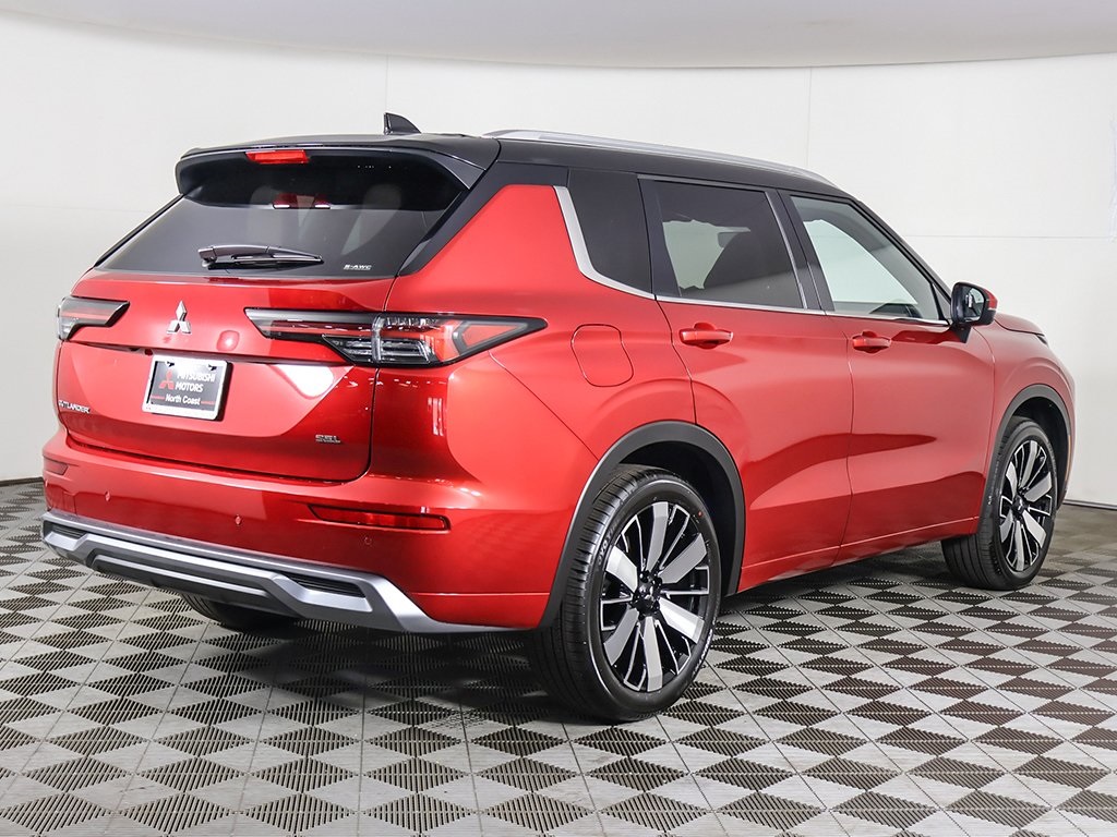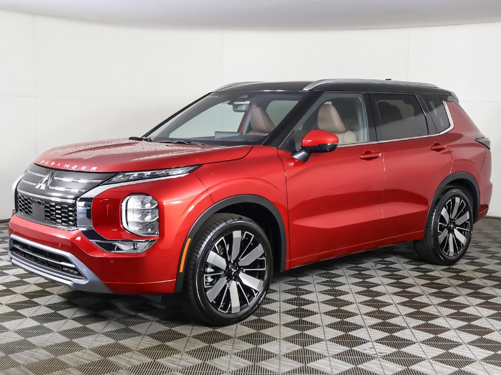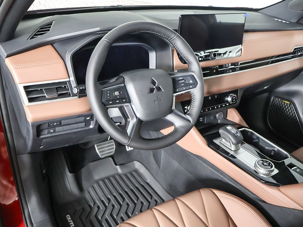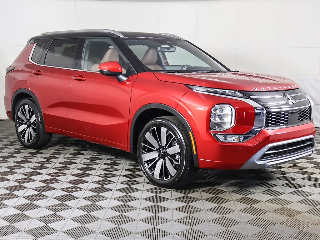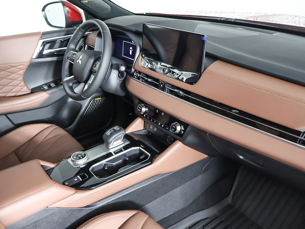 Red Diamond/Black Roof 2025 Mitsubishi Outlander SEL 4WD CVT 2.5L I4 DOHC 16V LEV3-ULEV50 181hp Keyless start, Power folding side-view mirrors, Around view camera w/MOD, Blind spot warning, Forward collision alert, Lane departure warning, Lane keep assist, Front & rear parking sensors, MI-PILOT Assist w/ Navi-link, Smartphone wireless charger, 4WD, 10.8'' Heads-Up Display (HUD), 3rd row seats: split-bench, Active Cruise Control, Android Auto & Apple CarPlay, Auto High-beam Headlights, Automatic temperature control, Digital Rearview Mirror w/Rear Camera, Dynamic Sound Yamaha Ultimate, Front dual zone A/C, Front fog lights, Fully automatic headlights, Headlight cleaning, Heated front seats, Heated rear seats, Heated steering wheel, Memory seat, Navigation System, Power driver seat, Power Liftgate, Power moonroof: Panoramic, Power passenger seat, Premium Package, Rear air conditioning, Reclining 3rd row seat, SEL Premium Package, Semi-Aniline Leather Appointed Seating Surfaces, Ventilated Seats, Wheels: 20'' Two-Tone Alloy.