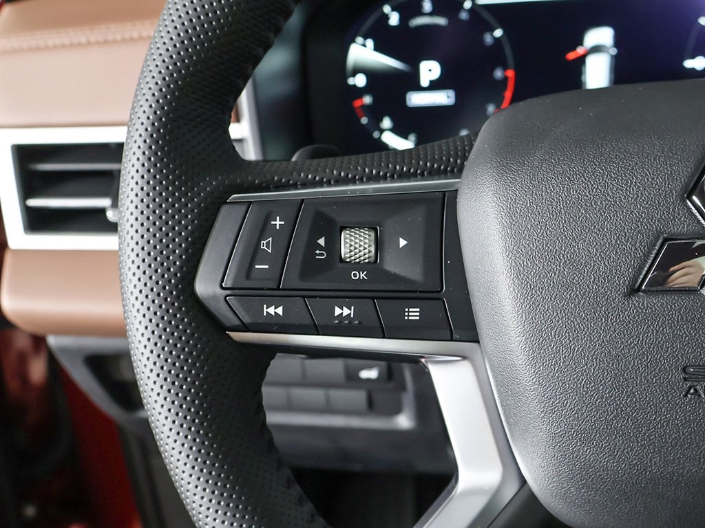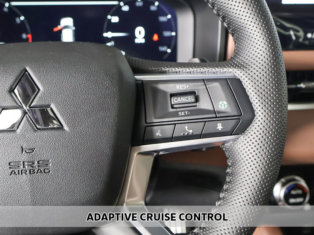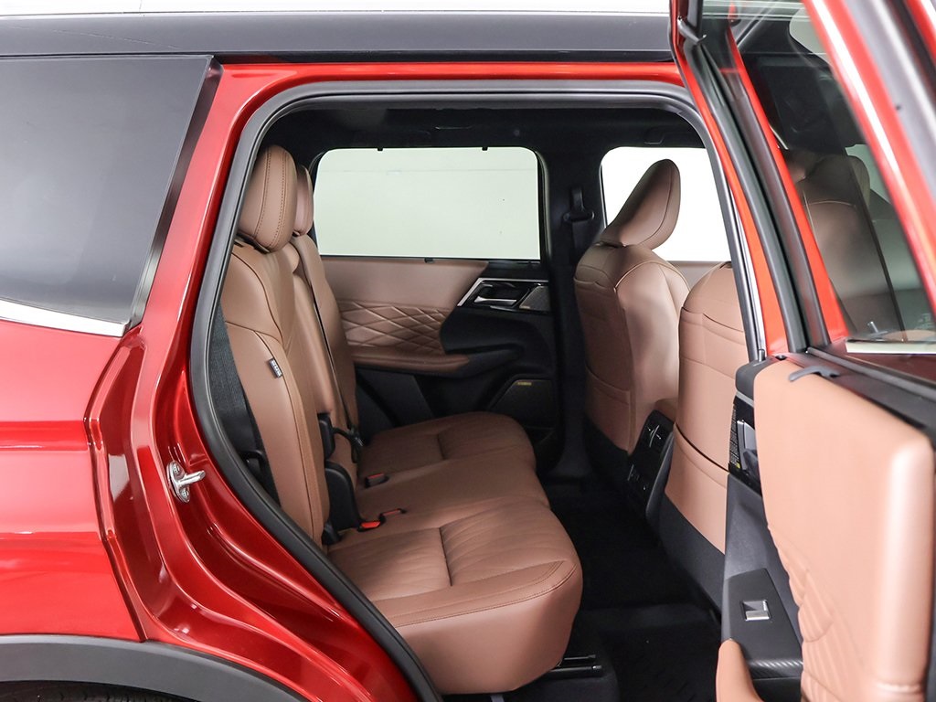 | Navigation System | | Premium Package | | SEL Premium Package | | AM/FM radio: SiriusXM | | Dynamic Sound Yamaha Ultimate | | Radio data system | | Radio: AM/FM 12.3'' Navigation w/Smartphone-Link | | Air Conditioning | | Automatic temperature control | | Front dual zone A/C | | Rear air conditioning | | Rear window defroster | | Memory seat | | Power driver seat | | Power steering | | Power windows | | Remote keyless entry | | Steering wheel mounted audio controls | | Four wheel independent suspension | | Traction control | | 4-Wheel Disc Brakes | | ABS brakes | | Dual front impact airbags | | Dual front side impact airbags | | Emergency communication system: Mitsubishi Connect w/ 24-month trial | | Front anti-roll bar | | Knee airbag | | Low tire pressure warning | | Occupant sensing airbag | | Overhead airbag | | Rear anti-roll bar | | Rear side impact airbag | | Power moonroof: Panoramic | | Power Liftgate | | Brake assist | | Electronic Stability Control | | Exterior Parking Camera Rear | | Auto High-beam Headlights | | Front fog lights | | Fully automatic headlights | | Headlight cleaning | | Panic alarm | | Security system | | Active Cruise Control | | Speed control | | Bumpers: body-color | | Heated door mirrors | | Power door mirrors | | Spoiler | | Turn signal indicator mirrors | | 10.8'' Heads-Up Display (HUD) | | Android Auto & Apple CarPlay | | Digital Rearview Mirror w/Rear Camera | | Driver door bin | | Driver vanity mirror | | Front reading lights | | Garage door transmitter: HomeLink | | Heated steering wheel | | Illuminated entry | | Leather Shift Knob | | Leather steering wheel | | Outside temperature display | | Overhead console | | Passenger vanity mirror | | Rear seat center armrest | | Tachometer | | Telescoping steering wheel | | Tilt steering wheel | | Trip computer | | 3rd row seats: split-bench | | Front Bucket Seats | | Heated front seats | | Heated rear seats | | Leather Appointed Seating Surfaces | | Power passenger seat | | Reclining 3rd row seat | | Semi-Aniline Leather Appointed Seating Surfaces | | Split folding rear seat | | Ventilated Seats | | Front Center Armrest w/Storage | | Passenger door bin | | Alloy wheels | | Wheels: 20'' Two-Tone Alloy | | Rain sensing wipers | | Rear window wiper | | Speed-Sensitive Wipers | | Variably intermittent wipers | | Keyless start | | Power folding side-view mirrors | | Around view camera w/MOD | | Blind spot warning | | Forward collision alert | | Lane departure warning | | Lane keep assist | | Front & rear parking sensors | | MI-PILOT Assist w/ Navi-link | | Smartphone wireless charger |