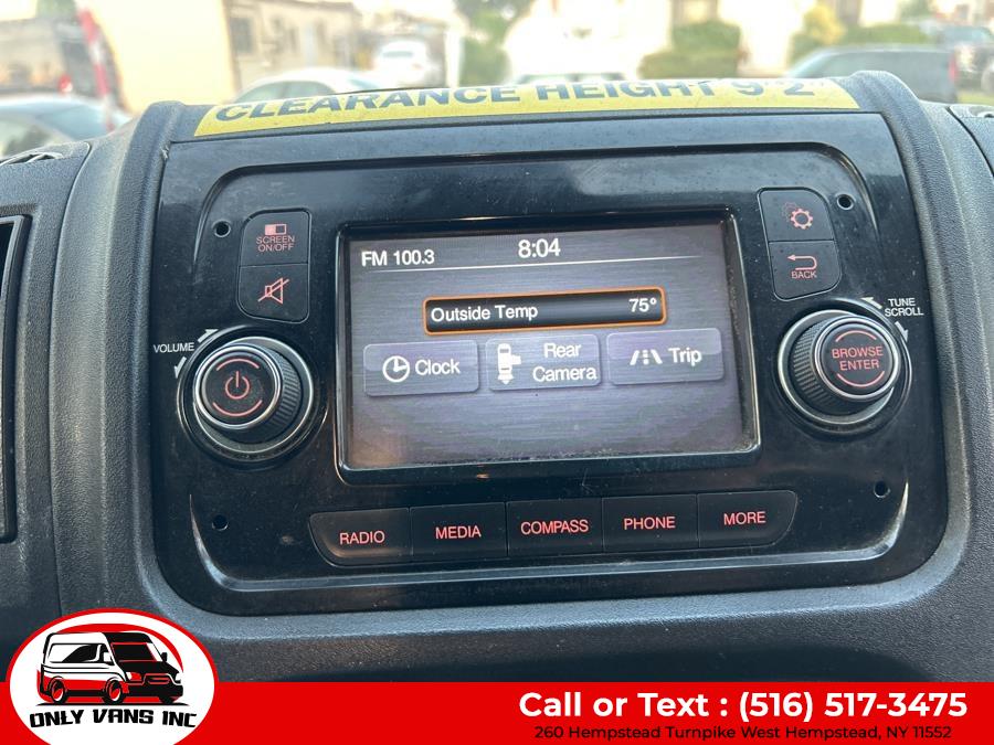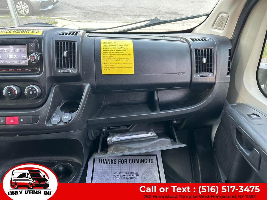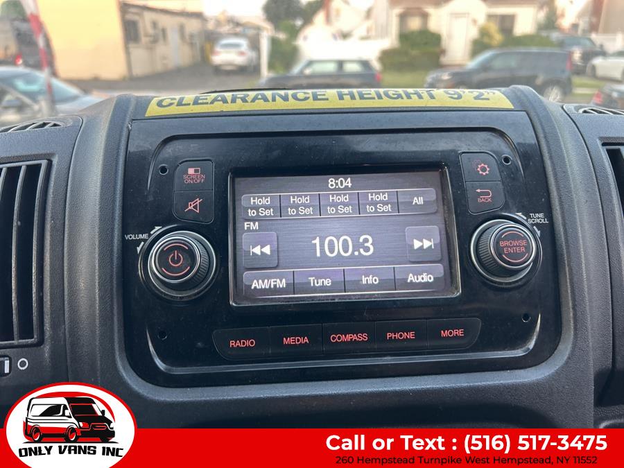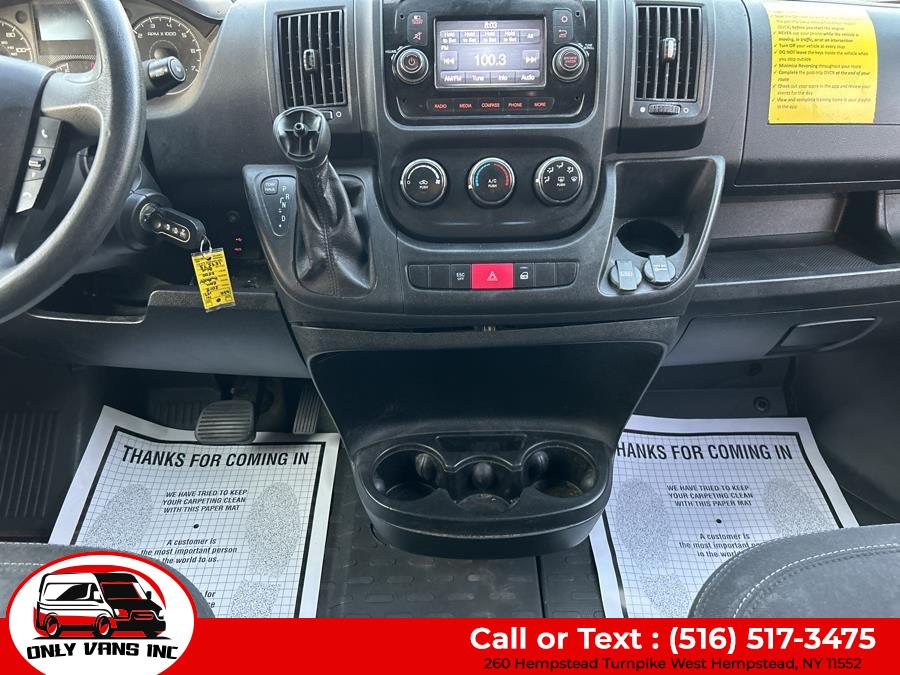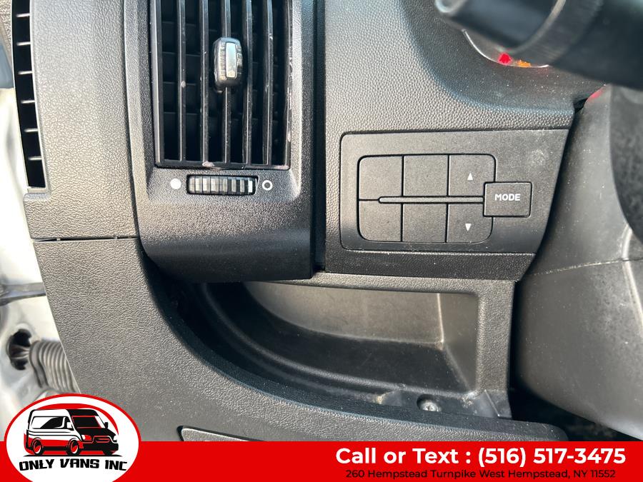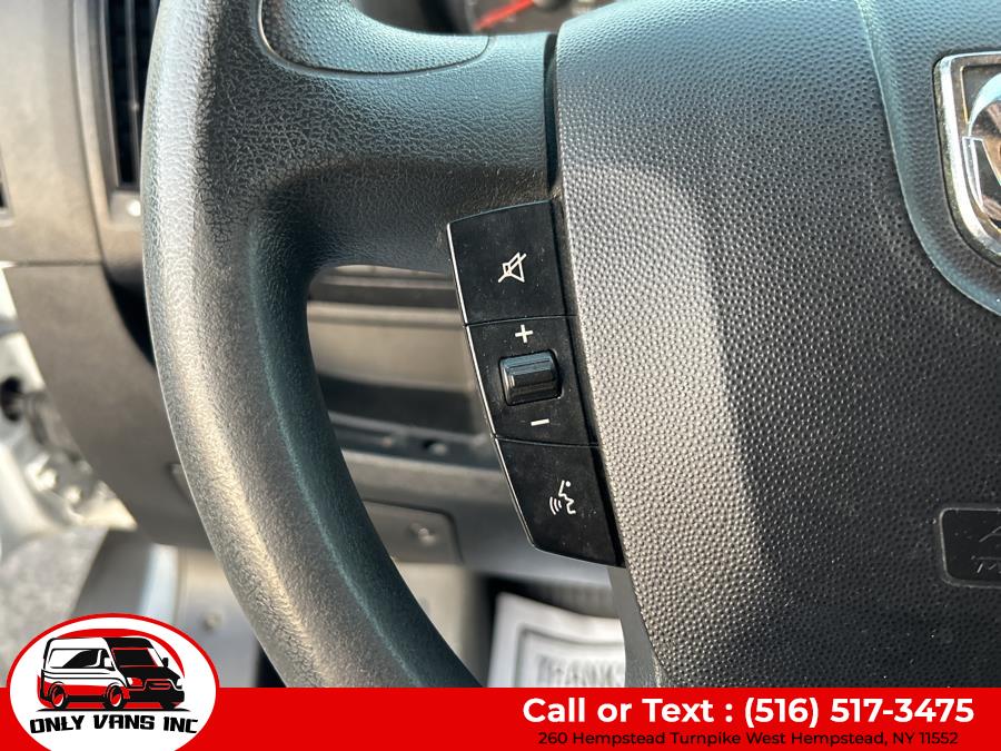 High Value Options FOLDABLE SHELVING PARTITION Back-up Camera Bluetooth Connection Integrated Turn Signal Mirrors Tire Pressure Monitor Packages QUICK ORDER PACKAGE 21A - 21A Engine: 3.6L V6 24V VVT Transmission: 6-Speed Automatic 62TE Equipment Steel Wheels DAYTIME RUNNING HEADLAMPS FRONT LICENSE PLATE BRACKET BLACK, CLOTH BUCKET SEATS POWER FOLDING/HEATED MIRRORS TIRES: LT225/75R16E BSW ALL SEASON WHEELS: 16" X 6.0" STEEL Options Interior Seats w/Vinyl Back Material Outside Temp Gauge Manual Telescoping Steering Column Driver Foot Rest Glove Box Front Cupholder Fade-To-Off Interior Lighting Front Only Vinyl/Rubber Floor Covering Front Cloth Headliner Fixed Front Head Restraints Instrument Panel Bin, Covered Dashboard Storage, Driver And Passenger Door Bins Day-Night Rearview Mirror Front Map Lights Cargo Space Lights 5.0" Touchscreen Display 1 12V DC Power Outlet 4-Way Driver Seat 4-Way Passenger Seat FOB Controls Urethane Gear Shifter Material Analog Appearance Immobilizer Driver Information Center Exterior Trailer Style Mirrors Steel Spare Wheel Sliding Rear Passenger Side Door Split Swing-Out Rear Cargo Access Gray Front Bumper Gray Grille Gray Bodyside Moldings and Gray Fender Flares Light Tinted Glass Fully Galvanized Steel Panels Center Wheel Cap Gray Rear Step Bumper Full-Size Spare Tire Mounted Underbody Clearcoat Paint Cab Clearance Lights Black Door Handles Black Manual Side Mirrors w/Convex Spotter, Manual Folding and Turn Signal Indicator Black Side Windows Trim Reflector Halogen Headlamps Comfort And Convenience Trip Computer Variable Intermittent Wipers Tailgate/Rear Door Lock Included w/Power Door Locks Streaming Audio Remote Keyless Entry w/Integrated Key Transmitter and Illuminated Entry Radio w/Seek-Scan, Clock and Speed Compensated Volume Control Radio: Uconnect 3 w/5" Display Power Door Locks w/Autolock Feature Power 1st Row Windows w/Driver And Passenger 1-Touch Down Media Input Hub Steering Wheel Mounted Audio Controls Media Hub (USB, AUX) Integrated Voice Command w/Bluetooth Integrated Roof Antenna Manual Air Conditioning 4 Speakers Gauges 1 LCD Monitor In The Front Bluetooth Wireless Phone Connectivity Mechanical Transmission w/Driver Selectable Mode, Sequential Shift Control and Oil Cooler Strut Front Suspension w/Coil Springs Single Stainless Steel Exhaust Hydraulic Power-Assist Steering Gas-Pressurized Shock Absorbers Engine Oil Cooler Heavy Duty Suspension GVWR: 8,900 lbs Front Anti-Roll Bar Brake Actuated Limited Slip Differential 4-Wheel Disc Brakes w/4-Wheel ABS, Front And Rear Vented Discs, Brake Assist and Hill Hold Control 95-Amp/Hr 800CCA Maintenance-Free Battery w/Run Down Protection 50 State Emissions 24 Gal. Fuel Tank 180 Amp Alternator 3.86 Axle Ratio 4020# Maximum Payload Towing Equipment Solid Axle Rear Suspension w/Leaf Springs Safety And Security Tire Specific Low Tire Pressure Warning ParkView Back-Up Camera Side Impact Beams Curtain 1st Row Airbags Dual Stage Driver And Passenger Seat-Mounted Side Airbags Electronic Stability Control (ESC) And Roll Stability Control (RSC) Dual Stage Driver And Passenger Front Airbags ABS And Driveline Traction Control Outboard Front Lap And Shoulder Safety Belts