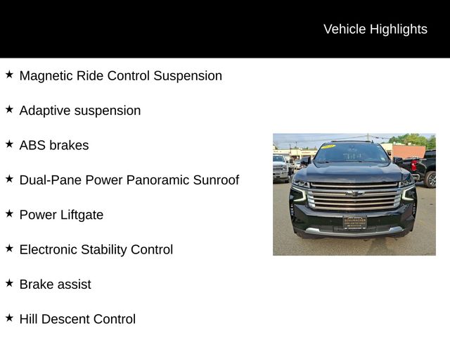Adaptive Cruise Control, New Tires, New Brakes, Bluetooth, Sunroof Moonroof, Satellite Radio, Leather Seats, Back Up Camera, Blind Spot Monitor, Cross Traffic Alert, Apple Car Play/Android Auto, Service Contract Available!, GM Certified, Heated Seats, Cooled Seats, NEW TIRES, NEW BRAKES, 4WD, Jet Black Leather, 15'' Diagonal Multi-Color Head-Up Display, 1st & 2nd Row Color-Keyed Carpeted Floor Mats, 2 USB Data Ports, 2-Speed Active Electronic AutoTrac Transfer Case, 3rd Row 60/40 Power-Folding Split-Bench Seat, ABS brakes, Adaptive Cruise Control, Adaptive suspension, Automatic Heated Steering Wheel, Bose 10-Speaker Centerpoint Surround Audio Sys Ft, Brake assist, Bright Front & Rear Door Sill Plates, Chrome Door Handles w/Body-Color Strip, Color-Keyed Carpeting Floor Covering, Driver & Front Outboard Passenger Airbags, Dual Exhaust System, Dual-Pane Power Panoramic Sunroof, Electronic Stability Control, Enhanced Driver Information Center, Floor Console w/Storage Area, Front & Rear Black Bowtie Emblems (LPO), Front & Rear Park Assist, Fully automatic headlights, Hands-Free Rear Power Programmable Liftgate, HD Radio, HD Surround Vision, Heads-Up Display, Heated & Ventilated Driver & Front Passenger Seats, Heated 2nd Row Outboard Seats, Hill Descent Control, Infotainment Display, Inside Rearview Auto-Dimming Rear Camera Mirror, Lane Change Alert w/Side Blind Zone Alert, Lane Keep Assist w/Lane Departure Warning, Leather-Wrapped Steering Wheel, LED Daytime Running Lamps, Magnetic Ride Control Suspension, Memory seat, Memory Settings, Navigation System, Outside Heated Power-Adjustable Mirrors, Power Liftgate, Power Release 2nd Row Bucket Seats, Power Tilt & Telescopic Steering Column, Power-Retractable Assist Steps, Preferred Equipment Group 3LZ, Premium Package 2, Radio: Chevrolet Infotainment 3 Premium System, Rear Camera Mirror Washer, Rear Cross Traffic Alert, Rear Pedestrian Alert, Remote Start, Safety Alert Seat, Set of 4 Wheel Locks (LPO), SiriusXM NavTraffic, SiriusXM Radio w/360L, Universal Home Remote, Wheels: 22'' x 9'' Sterling Silver Premium Painted.