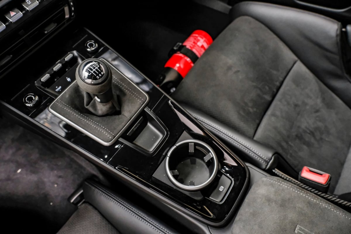 | Carbon Fiber Roof | | Carbon Fiber Bucket Seats | | 7 Speed Manual | | Black | | Leather Seat Trim W/Checkered Sport-Tex Centers | | Bose Surround Sound System | | Carbon Fiber Roof | | Center Console Lid In Race-Tex W/Porsche Logo | | Deletion Of 911 Carrera T Side Decal | | Fire Extinguisher | | Full Bucket Seats | | Gt Sport Steering Wheel In Race-Tex | | Locking Wheel Bolts | | Preparation For Front & Rear Porsche Dashcam | | Preparation For Roof Transport System | | Storage Package | | Under Door Puddle Light Projectors | | White |