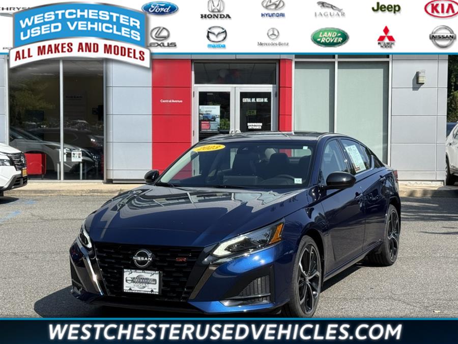 CARFAX One-Owner. CVT with Xtronic, 4-Wheel Disc Brakes, ABS brakes, Auto High-beam Headlights, Blind Spot Warning, Brake assist, Delay-off headlights, Dual front impact airbags, Dual front side impact airbags, Electronic Stability Control, Four wheel independent suspension, Front anti-roll bar, Fully automatic headlights, Heated Front Seats, Illuminated entry, Knee airbag, Leather-Appointed Seat Trim, Low tire pressure warning, NissanConnect, NissanConnect featuring Apple CarPlay and Android Auto, Occupant sensing airbag, Overhead airbag, Panic alarm, Power driver seat, Power steering, Power windows, Radio data system, Radio: AM/FM Audio System, Rear anti-roll bar, Rear Parking Sensors, Rear side impact airbag, Remote keyless entry, Security system, Single Panel Moonroof, Speed control, Speed-sensing steering, Steering wheel mounted audio controls, Traction control, Variably intermittent wipers. 2.5 SR 2023 Nissan Altima Deep Blue Pearl AWD Odometer is 9828 miles below market average! 26/36 City/Highway MPG