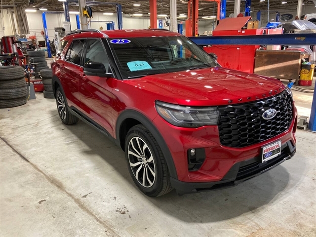 Red Metallic 2025 Ford Explorer ST-Line 4WD 10-Speed Automatic 2.3L EcoBoost I-4 4WD.20/27 City/Highway MPG Price includes $1,000 discount requires trade-in of 2014 model year or newer vehicle in good physical & mechanical condition with <150k miles on it.