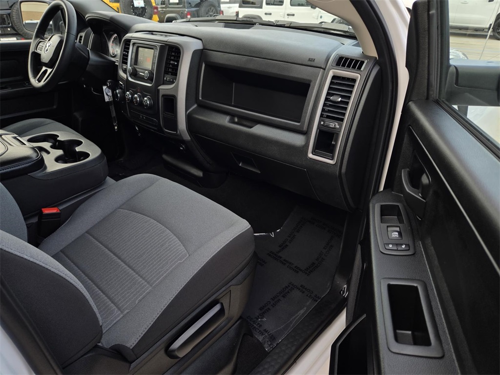 | Chrome Plus Package | | Quick Order Package 29B Tradesman | | Tradesman Package | | 6 Speakers | | AM/FM radio | | Audio Input Jack for Mobile Devices | | Radio data system | | Radio: Uconnect 3 w/5'' Display | | SiriusXM Guardian - Included Trial (B) | | Air Conditioning | | Power steering | | Power windows | | Rear Folding Seat | | Tip Start | | Traction control | | 4-Wheel Disc Brakes | | ABS brakes | | Body Color Upper Fascia | | Bright Front Bumper | | Bright Rear Bumper | | Dual front impact airbags | | Dual front side impact airbags | | Front anti-roll bar | | Front wheel independent suspension | | Low tire pressure warning | | Occupant sensing airbag | | Overhead airbag | | Rear anti-roll bar | | Remote Keyless Entry w/All-Secure | | Brake assist | | Electronic Stability Control | | ParkView Rear Back-Up Camera | | Delay-off headlights | | Fully automatic headlights | | Speed control | | Active Grille Shutters | | Black Exterior Mirrors | | Bright Grille | | Electronic Shift | | Exterior Mirrors w/Heating Element | | Front License Plate Bracket | | Heated door mirrors | | MOPAR Spray In Bedliner | | Power door mirrors | | Rear step bumper | | 1 Year Trial (Registration Required) | | Carpet Floor Covering | | Charge Only Remote USB Port | | Compass | | Driver door bin | | For Details Visit DriveUconnect.com | | Front Floor Mats | | Global Telematics Box Module (TBM) | | GPS Antenna Input | | Integrated Voice Command w/Bluetooth | | Outside temperature display | | Overhead console | | Rear Floor Mats | | Remote USB Port | | Tachometer | | Tilt steering wheel | | Voltmeter | | 40/20/40 Split Bench Seat | | Cloth 40/20/40 Bench Seat | | Front Armrest w/3 Cupholders | | Front Center Armrest | | Heavy Duty Vinyl 40/20/40 Split Bench Seat | | Manual Adjust Seats | | Passenger door bin | | Tri-Fold Tonneau Cover | | 17'' x 7'' Aluminum Wheels | | Center Hub | | Variably intermittent wipers | | 3.21 Rear Axle Ratio | | 3.55 Rear Axle Ratio | | LOCAL TRADE | | No Accidents Reported To CARFAX | | CARFAX 1-Owner Vehicle |