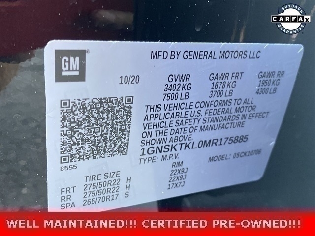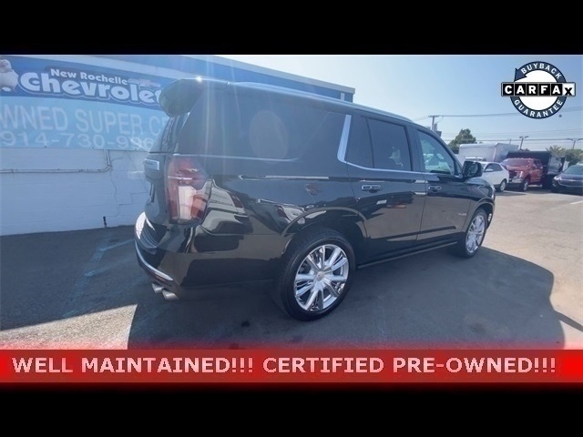 ***LEATHER***, ***LOW MILES***, ***4X4***, ***SUNROOF***, *** BACKUP SENSORS***, *** LEATHER ***, ***ACCIDENT FREE***, ***NAVIGATION***, ***CARBRAVO***, 4WD, Jet Black Leather. Priced below KBB Fair Purchase Price! Odometer is 20291 miles below market average! Clean CARFAX. Certified. Black 2021 Chevrolet Tahoe High Country 4WD 10-Speed Automatic with Overdrive EcoTec3 6.2L V8 At New Rochelle Chevrolet our pricing strategy guaranties you the most aggressive pricing up front with no games or gimmicks. Our advertised price is our best price and we are confident you will be completely satisfied with the complete buying experience at NEW ROCHELLE CHEVROLET!!! Scheduled an appointment to test drive any of our Pre-owned cars today..... We appreciate the opportunity to earn your business. Chevrolet Certified Pre-Owned Details: * 172 Point Inspection * Limited Warranty: 12 Month/12,000 Mile (whichever comes first) from certified purchase date * Transferable Warranty * Vehicle History * Roadside Assistance * 24 months/24,000 miles (whichever comes first) Certified Pre-Owned Scheduled Maintenance Plan and 3 days/150 miles (whichever comes first) Vehicle Exchange Program. SiriusXM 3-month trial subscription. * Powertrain Limited Warranty: 72 Month/100,000 Mile (whichever comes first) from original in-service date * Warranty Deductible: $0 Awards: * JD Power Automotive Performance, Execution and Layout (APEAL) Study * ALG Residual Value ABSOLUTELY committed to YOU!!!