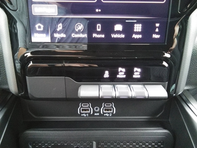 | BIG HORN LEVEL 2 EQUIPMENT GROUP -inc: SiriusXM Radio Service Power Adjustable Pedals Leather Wrapped Steering Wheel 12 Touchscreen Display Glove Box Lamp Auto Power-Folding Mirrors 115V Auxiliary Rear Power Outlet Media Hub w/2 Charge Only USBs Heated Front Seats Security Alarm Black Premium Power Mirrors Premium Overhead Console 9 Amplified Speakers w/Subwoofer Disassociated Touchscreen Display Secondary Active Grille Shutters Wireless Charging Pad Body Color Fender Flares Remote Tailgate Release 115V Auxiliary Power Outlet LED Dome Lamp w/On/Off Switch Universal Garage Door Opener 2nd Row In Floor Storage Bins Sun Visors w/Illuminated Vanity Mirrors LED Footwell Lighting Rear Window Defroster Rear View Auto Dim Mirror Rear Power Sliding Window GPS Navigation Overhead LED Lamps Wheels: 20 x 9 Aluminum Chrome Clad (WRK) Tires: 275/55R20 OWL All Season Bridgestone Brand Tires Auto Dim Exterior Driver Mirror SiriusXM w/360L Connected Travel & Traffi | | FRONT LICENSE PLATE BRACKET |