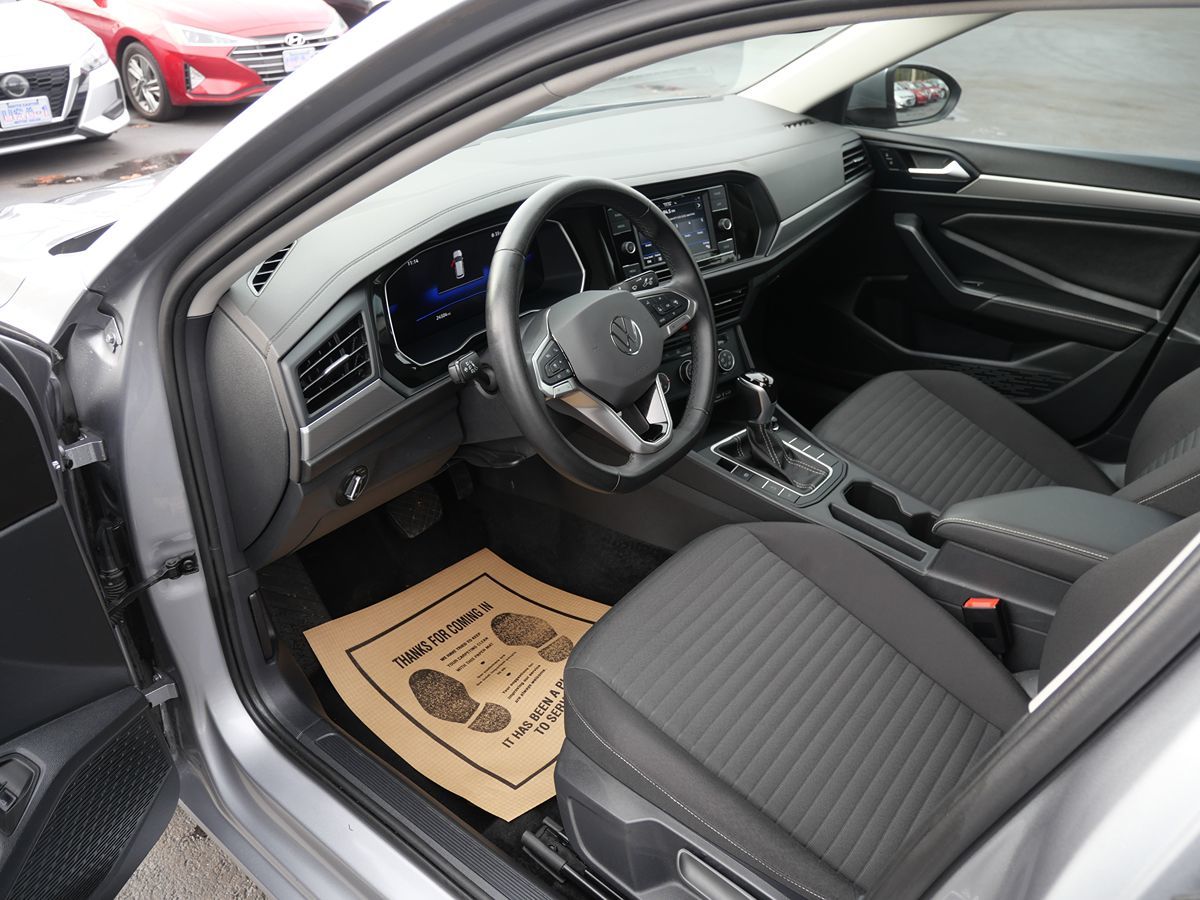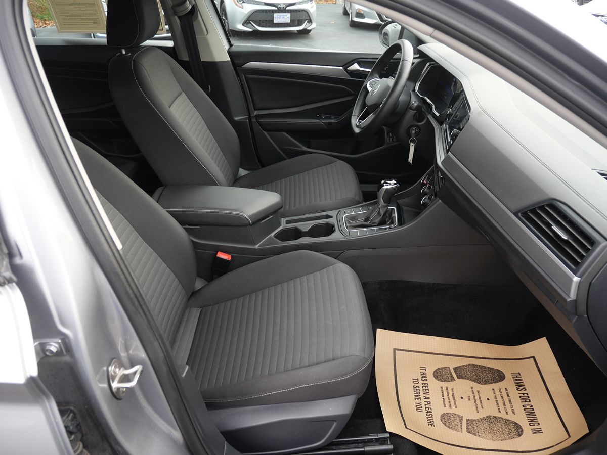 The 2024 Volkswagen Jetta S Auto in Platinum Gray Metallic presents a striking blend of elegance and modernity, defining its presence on the road with sophisticated style. Its exterior boasts clean lines and a smooth finish, while the LED headlights illuminate the path ahead, offering a clear view in all driving conditions. With advanced rain-sensing wipers, this sedan adapts seamlessly to changing weather, adding a touch of convenience and safety. The keyless entry system ensures ease of access, allowing you to step inside without the hassle of searching for keys. Inside, the Storm Gray interior embraces passengers with a refined and calming atmosphere, making every journey a pleasurable experience. Every detail in the cabin is designed to maximize comfort and functionality, highlighted by the intuitive layout of controls and high-quality materials. Telematics connectivity keeps you in touch with the world outside, providing essential information and entertainment options at your fingertips. The robust 1.5L 4-cylinder engine delivers a satisfying blend of performance and efficiency, perfect for both city commutes and long highway drives. Safety is paramount in the 2024 Jetta S Auto, with forward collision warning and lane departure warning ensuring peace of mind on every trip. This compact sedan's style effortlessly combines practicality with modern convenience, presenting a well-balanced driving experience for the discerning driver.