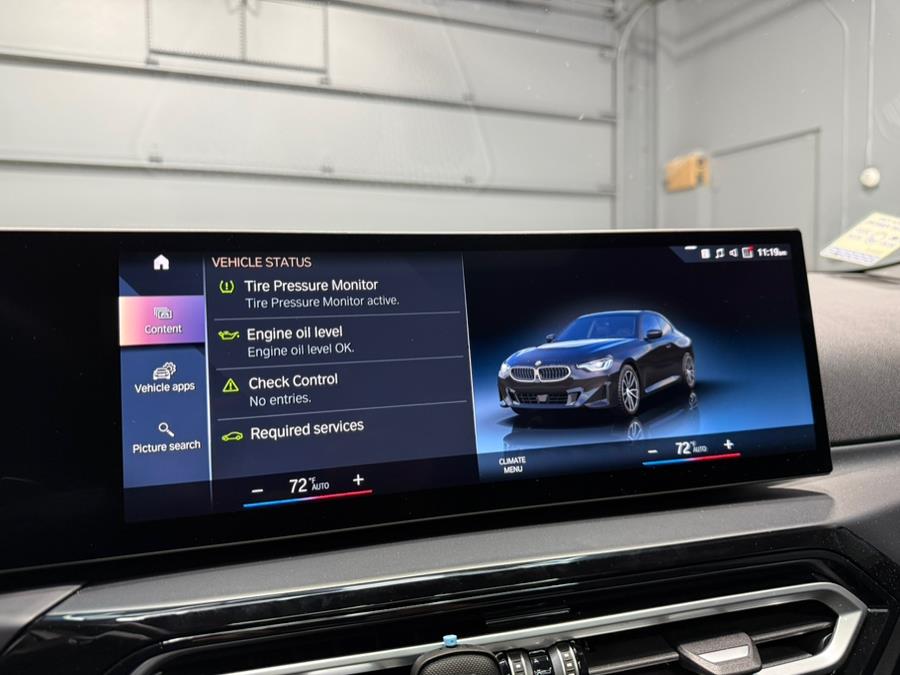 2024 BMW 230i xDrive Coupe , Low Miles, High Impact Black on Black | AWD Performance | Only 8,000 Miles This 2024 BMW 230i xDrive Coupe is a true driver,s car , sharp, responsive, and unmistakably BMW. Finished in Black Sapphire Metallic with a matching Black SensaTec interior, it delivers a clean, aggressive look paired with impressive performance. With just 8,000 miles, it's practically new and ready to be enjoyed. Under the hood, a 2.0L TwinPower Turbo engine and xDrive all-wheel drive system provide confident power and grip, making this coupe equally capable in all conditions. Key Features Include: 8-speed sport automatic transmission with paddle shifters Sport seats and leather-wrapped steering wheel Digital cockpit with curved display and iDrive 8 system Apple CarPlay & Android Auto Adaptive cruise control, lane departure warning, and backup camera Signature LED lighting and 18" alloy wheels With its low mileage, bold styling, and engaging drive, this 2 Series Coupe delivers a premium experience in a compact, performance-oriented package.