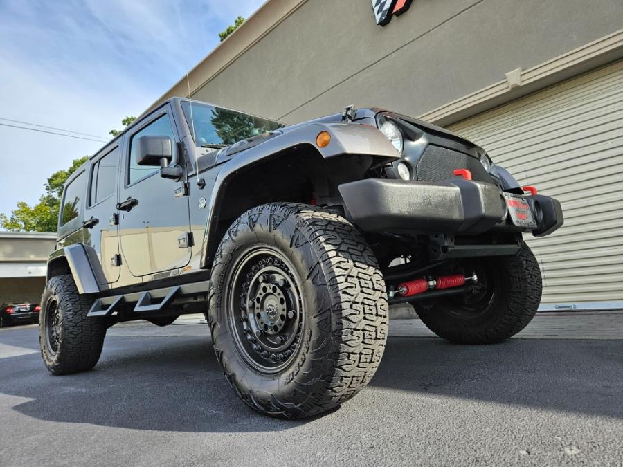 LOCAL L.I. JEEP WRANGLER UNLIMITED SAHARA JUST TRADED TO ALPINE!! ANOTHER REPEAT CUSTOMER!! WE SOLD THIS IN 2021 WITH 75K!! THIS GRANITE CRYSTAL JEEP HAS A CUSTOM DV8 STEEL VENTED HOOD, $8K AEV 3.5 INCH LIFT WITH RANCHO ADJUSTABLE SUSPENSION, FRONT AND REAR HELLWIG SWAYBARS, BLACK RHINO ARMORY GUN WHEELS WITH RADAR RENEGADE A/T PRO TIRES 35 X 12.5 X 18 TIRES, DUAL TOP GROUP, NAVIGATION, TOW PACKAGE, CUSTOM GRAB BARS, RUGGED RIDGE TIRE CARRIER AND RECEIVER, AND THE LIST GOES ON AND ON!! NEVER OFF ROAD!! UNDERNEATH IS BEAUTIFUL!! PROFESSIONALLY INSTALLED WITH RECEIPTS FROM THE TRUCK SHOP IN WEST SAYVILLE, L.I., NY!! ORIGINAL BOOKS, 2 KEYS, AND NON SMOKER!! METICULOUSLY SERVICED AND DEALER MAINTAINED WITH 22 DOCUMENTED SERVICES!! THIS VEHICLE WAS HIT WHILE PARKED. THE REAR TAILGATE DOOR AND CARRIER WERE REPLACED AND THE FRONT BUMPERETTE PLASTIC CORNER WAS REPLACED!! COME DOWN AND SEE THE ALPINE CERTIFIED DIFFERENCE TODAY!! **BY APPOINTMENT ONLY** ANOTHER FINE EXAMPLE OFFERED BY ALPINE MOTORS VOTED BEST OF L.I. 6 YEARS IN A ROW, 2021 CARGURUS TOP DEAL AWARD AND NYIADA QUALITY DEALER OF THE YEAR!! CLICK ON YOUR FREE CARFAX WE PROVIDE YOU TODAY!! SELLING ONLY THE FINEST HAND PICKED LOWEST MILEAGE CERTIFIED CARS AVAILABLE!! ONE ON ONE CUSTOMER ATTENTION BY APPOINTMENT ONLY GIVING YOU THE SERVICE YOU DESERVE!! ALL VEHICLES GO THRU A 100 POINT INSPECTION WITH BUMPER TO BUMPER WARRANTY COVERED AT OUR FACILITY ONLY!! IN HOUSE BANK FINANCING, OPTIONAL EXTENDED 5 YEAR / 100K MILE BUMPER TO BUMPER WARRANTIES AVAILABLE, AND SHIPPING IS AVAILABLE NATIONWIDE!! COME DOWN AND SEE THE ALPINE CERTIFIED DIFFERENCE!! CELEBRATING 31 YEARS OF SELLING ONLY THE FINEST HAND SELECTED PRE-OWNED AUTOMOBILES!! SHOP THE REST AND BUY FROM THE BEST!! **PLEASE NOTE ALL VIEWINGS AND ROAD TESTS ARE BY APPOINTMENT ONLY TO GIVE YOU 100% CUSTOMER SERVICE ATTENTION THAT YOU DESERVE!! PLEASE CALL OR EMAIL TO SCHEDULE A TIME TODAY!!** **WE CANNOT BE HELD RESPONSIBLE FOR ANY TYPOGRAPHICAL ERRORS OR MISREPRESENTATIONS**