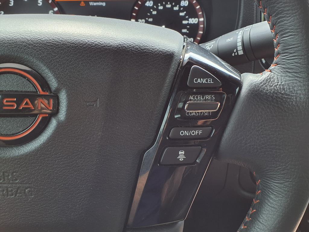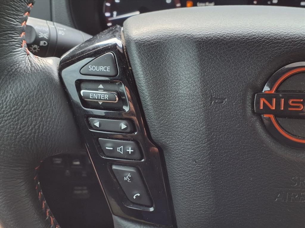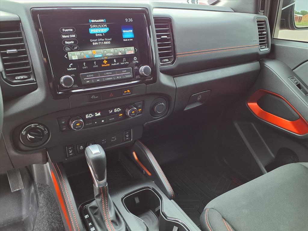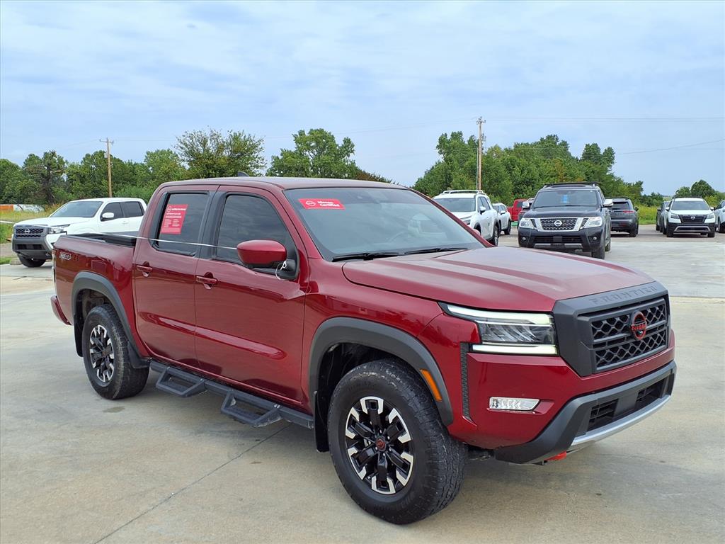 Clean CARFAX. Certified. 2024 Nissan Frontier PRO-4X Cardinal Red Metallic Tricoat 4WD 9-Speed Automatic with Overdrive 3.8L DI DOHC 24V V6 Local Trade, Under Factory Warranty, Blind Spot Monitor, Bluetooth, 4WD, 120V Power Outlet in Bed, 120V Power Outlet in Rear Center Console, Bed Under-Rail Lighting, Electronic Stability Control, Front dual zone A/C, Fully automatic headlights, Heated Front Seats, Heated Outside Mirrors, Heated Steering Wheel, Intelligent Around View Monitor (I-AVM), Navigation System, NissanConnect featuring Apple CarPlay and Android Auto, PRO Convenience Package, PRO Embroidered Premium Cloth Seat Trim, PRO-4X Carpeted Floor Mats, Remote Engine Starter, Spray-In Bedliner, Tow Package (T11), Trailer Hitch w/Wiring Harness, Utili-Track System, Wireless Charging For Personal Devices. Nissan Certified Details: * Roadside Assistance * Transferable Warranty * 167 Point Inspection * Warranty Deductible: $100 * Vehicle History * Limited Warranty: 84 Month/100,000 Mile (whichever occurs first) * 7 Year/100,000 Mile Limited Warranty, 24/7 Hour Roadside Assistance, Carfax Vehicle History Report, Plus 1 Year Pre-Paid Maintenance Included. Gas Powered Nissan Models Only. Call us today at 580-332-2233 to schedule your VIP Test Drive!