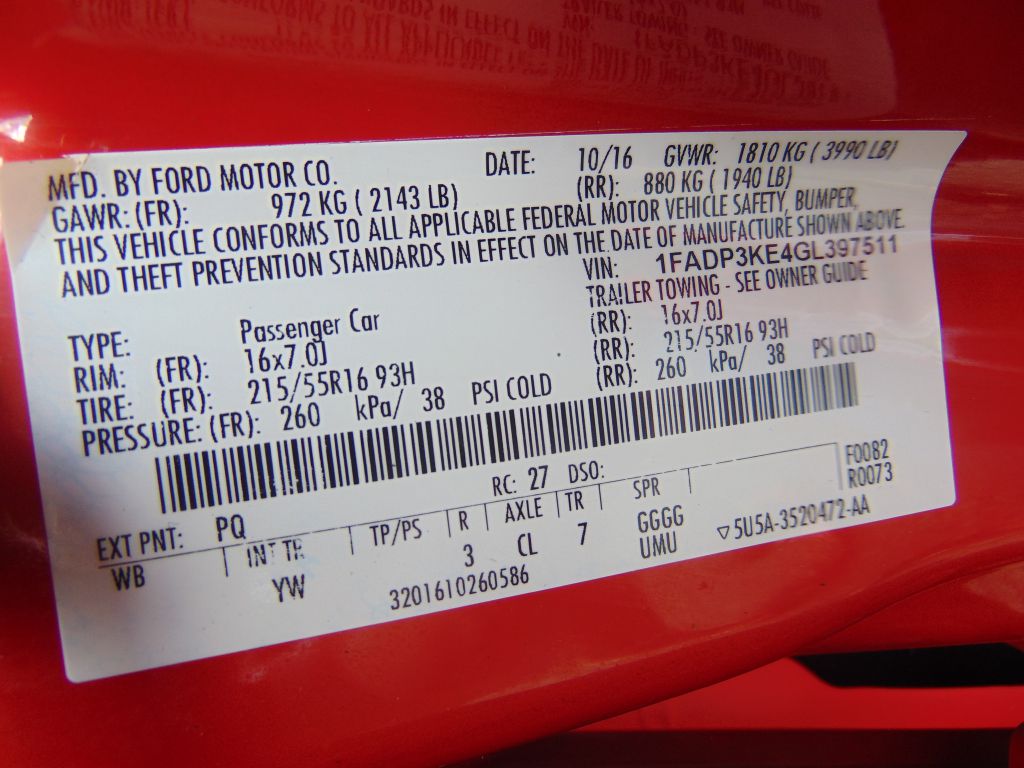 VIN #: 1FADP3KE4GL397511