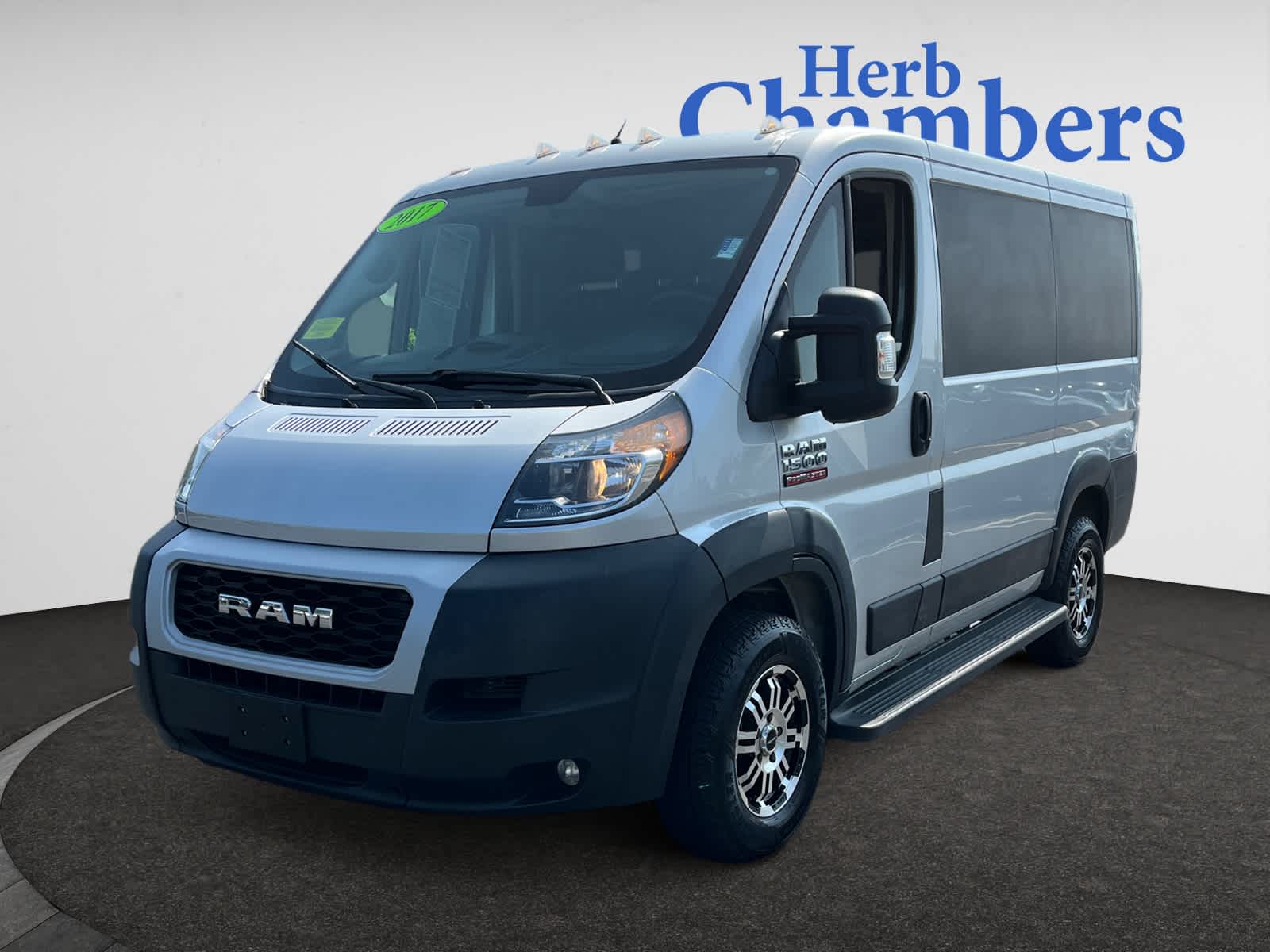 INSPECTION COMPLETED Every Herb Chambers pre-owned vehicle receives a complete multi-point inspection by factory trained technicians who inspect the tires, perform a brake inspection, battery voltage test as well as function test all lights. Additionally, we inspect the cooling system, transmission fluid, differential fluid as well as function test all options accessories. And for all non-Electric Vehicles we also check the Exhaust System and do a complete Oil Filter Change. We then professionally detail the vehicle inside and out. SERVICE WORK Service Work completed on this Ram ProMaster Cargo Van includes: Total Value: $752. Oil Filter Change by a Factory Trained Technician Using Original OEM Parts, Wheel/Tire Balance, Engine Air Filter Replaced, Cabin Air Filter Replaced, Professional Detailed Inside and Out, Function Test all Lights, Engine Drive Belts Inspected. Serviced here, Non-Smoker vehicle BUY WITH CONFIDENCE Only a Herb Chambers CERTIFIED Pre-Owned vehicle receives a Rigorous Multi-Point Inspection 5-Day 100% Money Back Guarantee / 30-Day, 1,500 Mile Vehicle Exchange and a Portfolio CarFax. Visit www.herbchamberssmartpricing.com and https: //www.herbchambers.com/guarantee-details.htmfor for complete details. OPTION PACKAGES CLASS IV RECEIVER HITCH 7/4 pin wiring, PASSENGER DOUBLE SEAT Included w/the independent drivers seat is a passenger seat w/a middle seat attached, REAR HINGED DOORS W/FIXED GLASS Deep Tint Sunscreen Glass, SPEED CONTROL, POWER FOLDING/HEATED MIRRORS, PARKSENSE REAR PARK ASSIST SYSTEM, BLACK, VINYL BUCKET SEATS, TRANSMISSION: 6-SPEED AUTOMATIC 62TE (STD), ENGINE: 3.6L V6 24V VVT (STD). KEY FEATURES INCLUDE Back-Up Camera, iPod/MP3 Input, Bluetooth®, Brake Actuated Limited Slip Differential Ram ProMaster Cargo Van with Bright Silver Metallic Clearcoat exterior and Black interior features a V6 Cylinder Engine with 280 HP at 6400 RPM*. CARFAX 1-Owner AutoCheck One Owner This ProMaster Cargo Van is priced $1,800 below J.D. Power Retail. Was $21,988. .