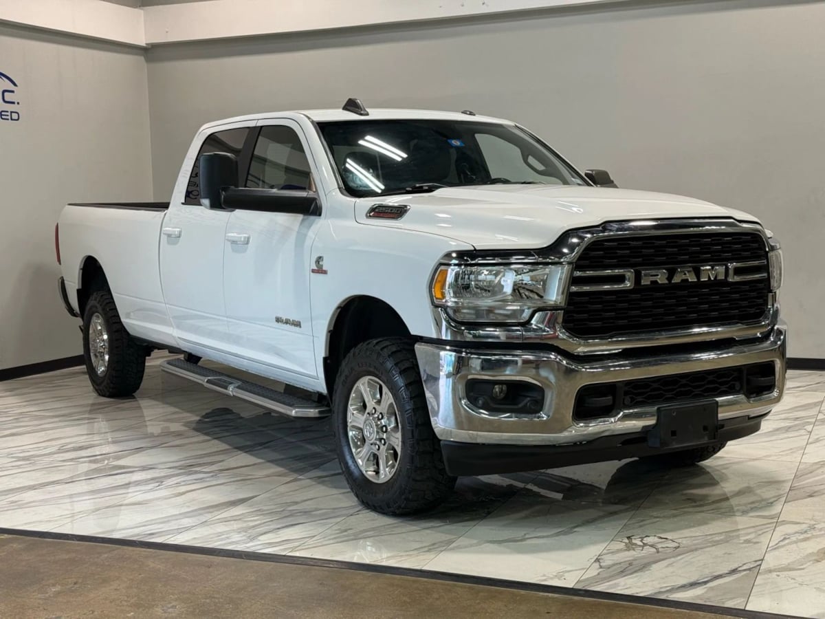 Buying our Diesel powered 2022 RAM 2500 Big Horn Crew Cab 4X4 brings a most versatile player to your team in Bright White! Motivated by a TurboCharged 6.7 Liter Cummins Diesel 6 Cylinder providing 370hp and 850lb-ft of torque to a 6 Speed Automatic transmission for impressive capability. This Four Wheel Drive truck also inspires confidence with a heavy-duty suspension, and it captures attention with a compelling design. Highlights include quad halogen headlamps, heated power trailer mirrors, chrome-clad wheels, chrome bumpers, matching grille accents, an LED tailgate lamp, running boards, and a Class V receiver hitch. Our Big Horn cabin has key benefits for better trucking, starting with supportive cloth seats, air conditioning, power accessories, cruise control, a 12V power outlet, a 3.5-inch color driver display, and keyless access/ignition. A Uconnect® infotainment system answers the call for digital convenience with an 8.4-inch touchscreen, voice control, WiFi compatibility, Android Auto®, Apple CarPlay®, and a six-speaker sound system. Pursue your days with peace of mind, knowing RAM helps you stay safe with intelligent features like a backup camera, ABS, stability/traction control, hill-start assistance, tire-pressure monitoring, trailer sway control, and advanced airbags. Our 2500 Big Horn is a mighty machine for getting more done! Save this Page and Call for Availability. We Know You Will Enjoy Your IMD Motors Test Drive Towards Ownership! .