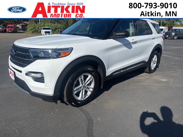 Aitkin Motor Company is proud to offer this attractive-looking 2021 Ford Explorer XLT in Oxford White, beautifully equipped with Class III Trailer Tow Package (SelectShift Capability w/Paddle Shifters), Equipment Group 202A (Acoustic-Laminated Front Side Windows, ActiveX Captain's Chairs, Heated Steering Wheel, LED Fog Lamps, and Remote Start System), Ford Co-Pilot360 Assist+ (Evasive Steering Assist, Intelligent Adaptive Cruise Control, Speed Sign Recognition, and Voice-Activated Touchscreen Navigation System), 1st Row Heated Seats, 3.58 Non-Limited-Slip Rear Axle Ratio, 3rd row seats: bench, 4-Wheel Disc Brakes, 6 Speakers, ABS brakes, Air Conditioning, Alloy wheels, AM/FM radio: SiriusXM, AM/FM Stereo, Auto High-beam Headlights, Automatic temperature control, Brake assist, Bumpers: body-color, Compass, Delay-off headlights, Driver door bin, Driver vanity mirror, Dual front impact airbags, Dual front side impact airbags, Electronic Stability Control, Emergency communication system: SYNC 3 911 Assist, Engine Block Heater, Exterior Parking Camera Rear, FordPass Connect, Four wheel independent suspension, Front & Second Row Floor Liners (16B), Front anti-roll bar, Front Bucket Seats, Front Center Armrest, Front dual zone A/C, Front License Plate Bracket, Front reading lights, Fully automatic headlights, Heated door mirrors, Heated front seats, Illuminated entry, Knee airbag, Leather steering wheel, Low tire pressure warning, Occupant sensing airbag, Outside temperature display, Overhead airbag, Overhead console, Panic alarm, Passenger door bin, Passenger vanity mirror, Power door mirrors, Power driver seat, Power Liftgate, Power passenger seat, Power steering, Power windows, Rear air conditioning, Rear anti-roll bar, Rear reading lights, Rear window defroster, Rear window wiper, Remote keyless entry, Roof rack: rails only, Security system, Speed control, Speed-sensing steering, Speed-Sensitive Wipers, Split folding rear seat, Spoiler, Steering wheel mounted audio controls, SYNC 3 Communications & Entertainment System, SYNC 3/Apple CarPlay/Android Auto, Tachometer, Telescoping steering wheel, Tilt steering wheel, Traction control, Trip computer, Unique Cloth Captain's Chairs, Variably intermittent wipers, and Wheels: 18'' 5-Spoke Sparkle Silver-Painted Alum!