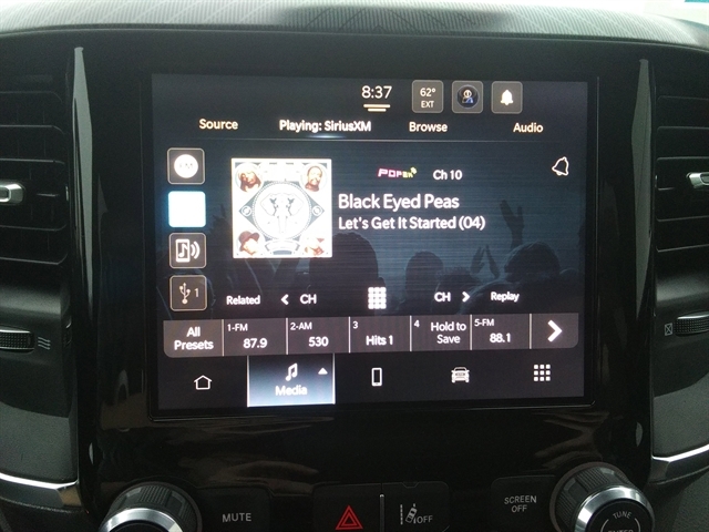 | TIRES: 275/55R20 OWL ALL SEASON -inc: Bridgestone Brand Tires | | BIG HORN LEVEL 1 EQUIPMENT GROUP -inc: SiriusXM Radio Service Rear Window Defroster Rear View Auto Dim Mirror Power Adjustable Pedals Leather Wrapped Steering Wheel Rear Power Sliding Window Rear Dome w/On/Off Switch Lamp Glove Box Lamp Auto Power-Folding Mirrors Auto Dim Exterior Driver Mirror Heated Front Seats Heated Steering Wheel Black Premium Power Mirrors SiriusXM Satellite Radio 400W Inverter Secondary Active Grille Shutters Exterior Mirrors w/Supplemental Signals Steering Wheel Mounted Audio Controls Exterior Mirrors Courtesy Lamps Body Color Fender Flares 115V Auxiliary Power Outlet Universal Garage Door Opener 2nd Row In Floor Storage Bins Sun Visors w/Illuminated Vanity Mirrors |