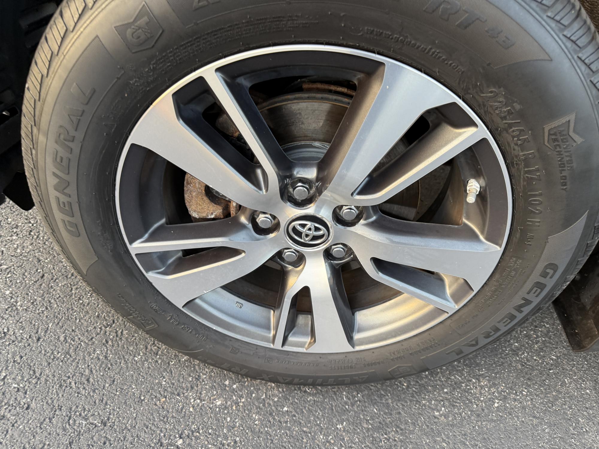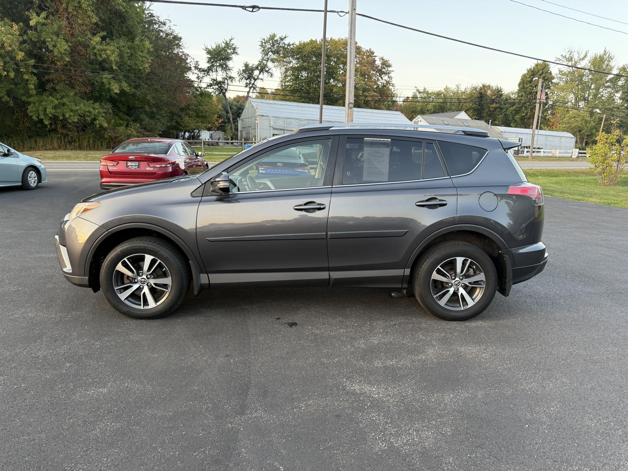One Owner 2017 Toyota RAV4 XLE AWD – Reliable, Versatile, and Packed with Safety Features! Drive with confidence in this one-owner 2017 Toyota RAV4 XLE AWD. Powered by a fuel-efficient 2.5L I4 engine with a 6-speed automatic transmission, this SUV delivers a smooth ride and impressive efficiency—up to 28 MPG on the highway. With all-wheel drive and four brand new tires, you’re ready for any season or adventure. Enjoy peace of mind with advanced safety features including Forward Collision Warning with Automatic Emergency Braking, Adaptive Cruise Control, Lane Keep Assist, Auto High Beams, Daytime Running Lights, and Dusk Sensing Headlights. The comfortable, modern cabin features dual zone automatic climate control, a power moonroof, a 7.0" touchscreen with backup camera, and a 4.2" digital gauge cluster. ECO and Sport modes let you tailor your drive to your mood or the road ahead. This Toyota is fully serviced and comes with a 3 month 3,000 mile warranty.