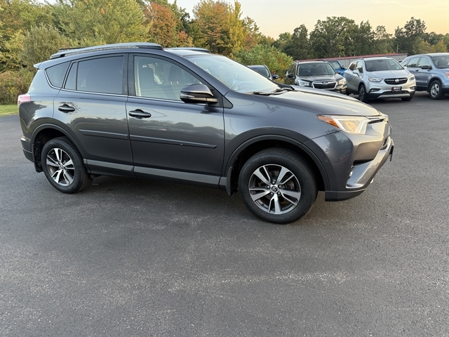 One Owner 2017 Toyota RAV4 XLE AWD – Reliable, Versatile, and Packed with Safety Features! Drive with confidence in this one-owner 2017 Toyota RAV4 XLE AWD. Powered by a fuel-efficient 2.5L I4 engine with a 6-speed automatic transmission, this SUV delivers a smooth ride and impressive efficiency—up to 28 MPG on the highway. With all-wheel drive and four brand new tires, you’re ready for any season or adventure. Enjoy peace of mind with advanced safety features including Forward Collision Warning with Automatic Emergency Braking, Adaptive Cruise Control, Lane Keep Assist, Auto High Beams, Daytime Running Lights, and Dusk Sensing Headlights. The comfortable, modern cabin features dual zone automatic climate control, a power moonroof, a 7.0 touchscreen with backup camera, and a 4.2 digital gauge cluster. ECO and Sport modes let you tailor your drive to your mood or the road ahead. This Toyota is fully serviced and comes with a 3 month 3,000 mile warranty.
