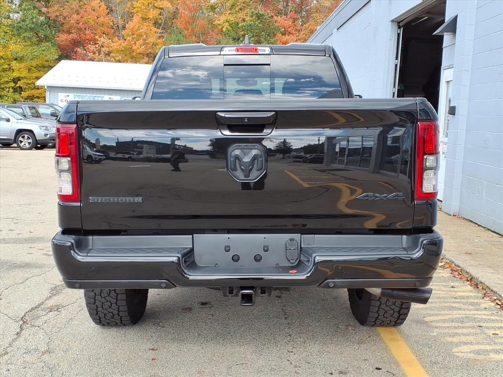 This 2021 RAM Quad Cab 4x4, 1500 Big Horn Vehicle is a marvel of automotive engineering. It has a 3.6 liter Pentastar eTorque V6 305hp 269 lb-ft engine with sequential port fuel injection, and a diamond black crystal pearl coat pxj exterior. It has driven 42,170 miles and has a fuel economy of 19 mpg in the city and 24 mpg on the highway. It has a black x9 interior and a crash test rating of 4 out of 5 stars. Vehicle features include touch screen display, Bluetooth audio connection, hill start assist, part time with on demand four wheel drive, Apple Carplay ready, parksense front and rear park assist, Bluetooth phone connectivity, remote start, and more. This car is sure to turn heads wherever it goes!