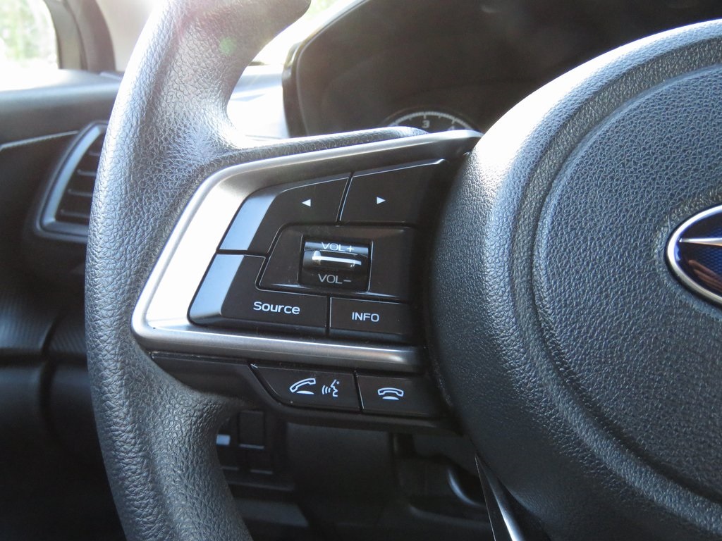 | Standard Model | | 16'' Steel Wheels | | Cloth Upholstery | | Radio: Subaru STARLINK 6.5'' Multimedia System | | 4 Speakers | | STARLINK/Apple CarPlay/Android Auto | | Exterior Parking Camera Rear | | Variably intermittent wipers | | Trip computer | | Traction control | | Tilt steering wheel | | Telescoping steering wheel | | Steering wheel mounted audio controls | | Split folding rear seat | | Speed-sensing steering | | Speed control | | Security system | | Remote keyless entry | | Rear window defroster | | Radio data system | | Power windows | | Power steering | | Power door mirrors | | Passenger vanity mirror | | Passenger door bin | | Panic alarm | | Overhead console | | Overhead airbag | | Outside temperature display | | Occupant sensing airbag | | Low tire pressure warning | | Knee airbag | | Illuminated entry | | Front reading lights | | Front anti-roll bar | | Four wheel independent suspension | | Emergency communication system | | Dual front side impact airbags | | Dual front impact airbags | | Driver vanity mirror | | Driver door bin | | Bumpers: body-color | | Brake assist | | Adjustable head restraints: driver and passenger w/tilt | | AM/FM radio | | ABS brakes | | Tachometer | | Front Center Armrest | | Front Bucket Seats | | Electronic Stability Control | | Air Conditioning | | 4-Wheel Disc Brakes |