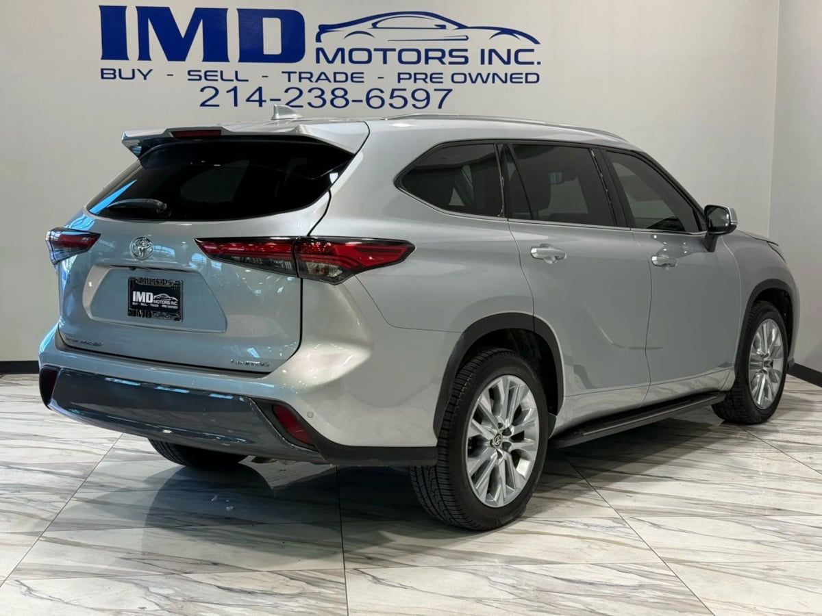 Elevate your driving in our 2021 Toyota Highlander Limited that looks especially compelling in Celestial Silver Metallic! Featuring a 3.5 Liter V6 that delivers 295hp matched to an 8 Speed Automatic transmission for robust capability. This Front Wheel Drive SUV is also efficient enough to return nearly 29mpg on the highway and stylish enough to turn heads with its bold grille that's set off by LED lighting, high-output fog lamps, 20-inch alloy wheels, a power sunroof, and a hands-free tailgate that's a big help with cargo! Our upscale Limited cabin puts your family first with leather heated/ventilated front seats, second-row captain's chairs, a leather heated steering wheel, tri-zone automatic climate control, and elegant faux wood trim. Take digital command of your life with an 8-inch touchscreen, full-color navigation, wireless charging, and five connectivity choices: Android Auto®, Apple CarPlay®, Bluetooth®, and compatibility for both WiFi and Amazon Alexa. And the JBL audio system adds the perfect soundtrack. Toyota prioritizes your peace of mind with a backup camera, a blind-spot monitor, and a standard Safety Sense 2.5 package with adaptive cruise control, automatic emergency braking, and lane-keeping assistance. With all that and more, our Highlander Limited is built to meet your high standards and then some! Save this Page and Call for Availability. We Know You Will Enjoy Your IMD Motors Test Drive Towards Ownership! .