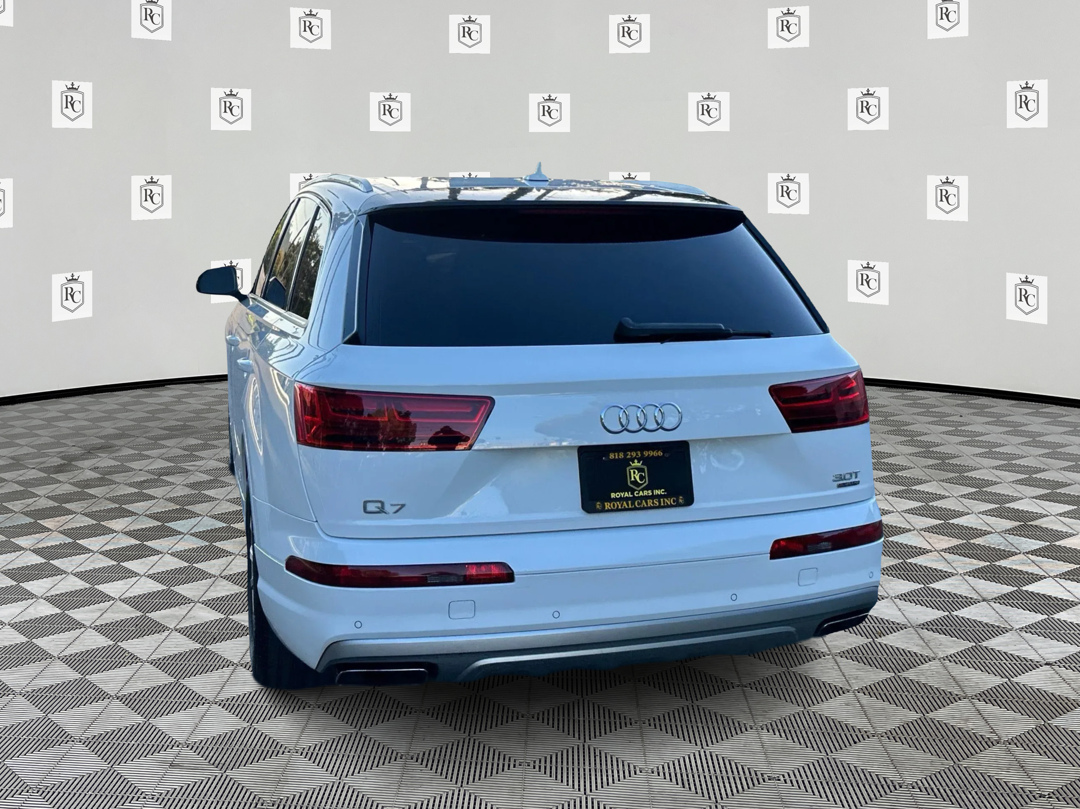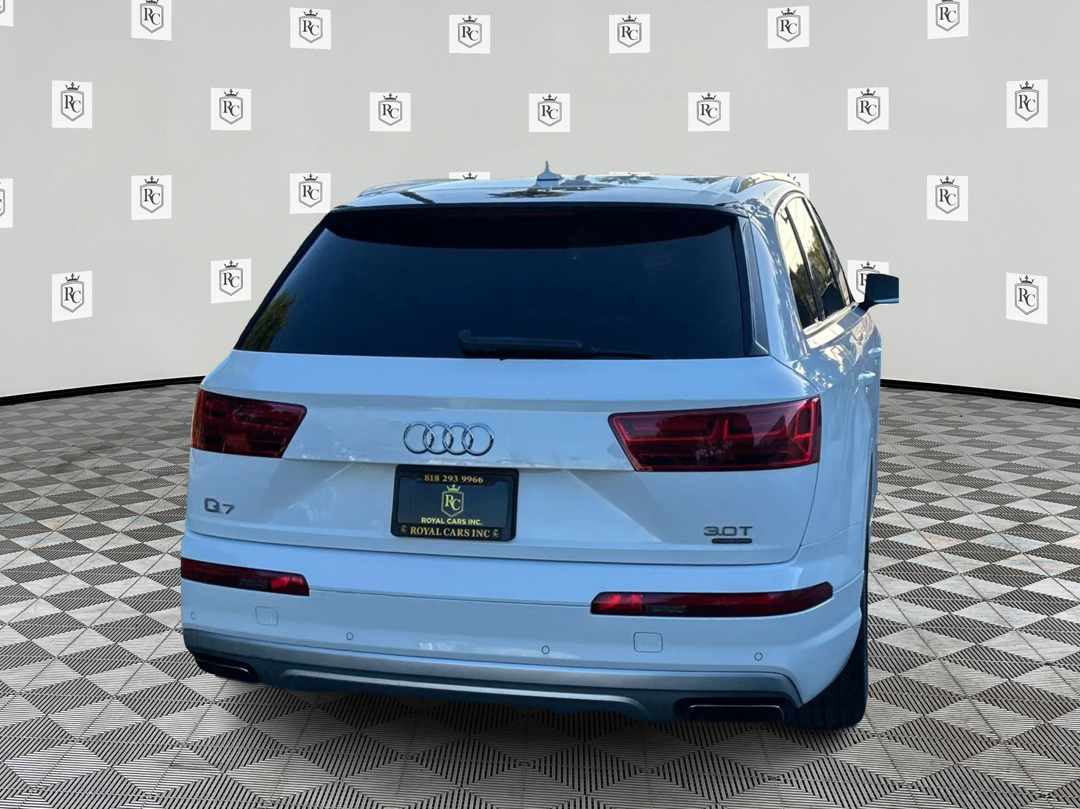 Dare to turn heads with our low mile 2017 Audi Q7 Premium Plus quattro that reaches fresh heights of performance and refinement in Carrara White! Powered by a SuperCharged 3.0 Liter V6 that offers 333hp paired with a responsive 8 Speed Automatic transmission. With this amazing All Wheel Drive SUV, you'll reach 60mph in 5.7 seconds and score nearly 25mpg on the highway while enjoying a satisfying driving experience tailored to your mood thanks to the Drive Select modes. Take on winding roads or even go off-road in this impeccable SUV! Make a bold statement with the commanding, sleek stance of our Q7 Premium Plus, which is enhanced by xenon headlights, LED running lights, and unique alloy wheels. With exceptional comfort for seven passengers, the Premium Plus interior greets you with keyless ignition/entry, a panoramic sunroof, three-zone automatic climate control, a prominent color driver information display, heated leather seats, driver memory settings, and a rearview camera. Enjoy next-level connectivity with our Audi MMI infotainment featuring a central display, Bluetooth®, smartphone integration, available WiFi hotspot, full-color navigation, fantastic audio, available satellite radio, and more! A great safety pick, this Audi lets you get to your destination with peace of mind thanks to advanced safety features, including collision warning with automatic braking, parking sensors, advanced airbags, and stability/traction control. Boasting class-leading power, legendary quattro handling, a wealth of amenities, and head-turning style, this Q7 Premium Plus is certainly a smart choice! Save this Page and Call for Availability. We Know You Will Enjoy Your Royal Cars Inc. Test Drive Towards Ownership! .