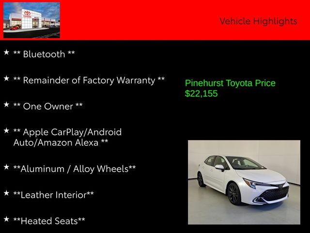 With its exceptional performance, advanced safety features, and unparalleled Toyota reliability, this 2023 Corolla Hatchback XSE is the perfect blend of style, efficiency, and practicality. Experience the difference for yourself and schedule a test drive today. We look forward to the opportunity to earn your business.