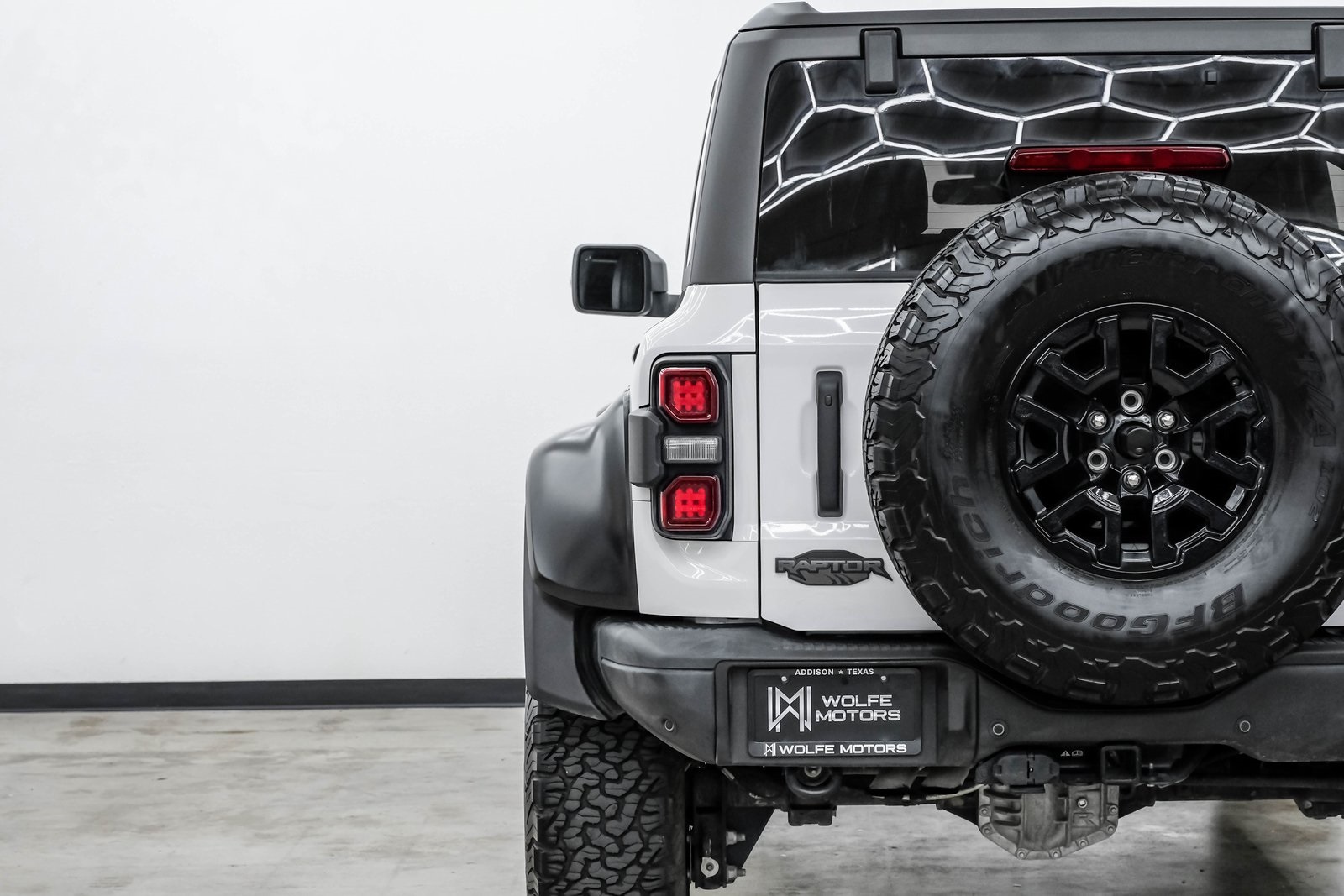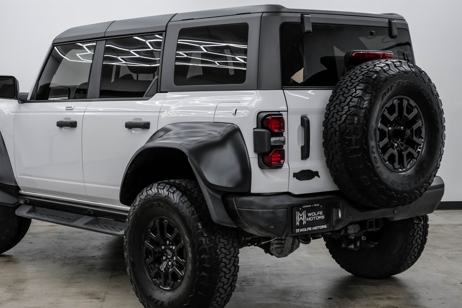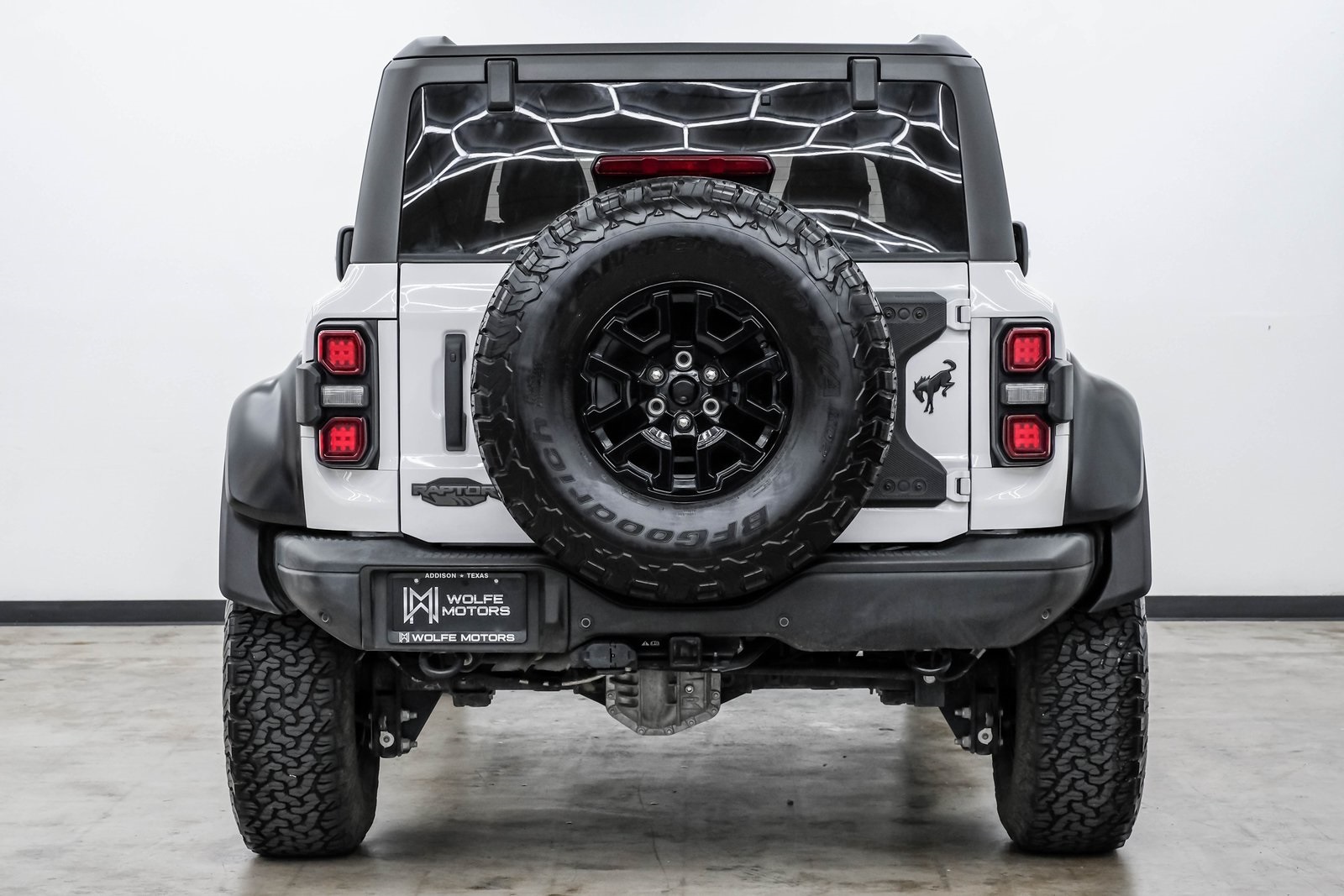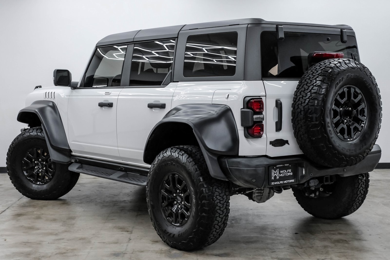 2023 Ford Bronco Raptor Oxford WhiteUltra-High Performance • 418 HP 3.0L EcoBoost • Loaded with PackagesThis 2023 Ford Bronco Raptor is the ultimate off-road performance SUV the wildest, most capable Bronco Ford has ever built. Finished in Oxford White over Black Raptor-exclusive leather and suede trim, this Raptor delivers an unmistakable presence on and off the road.With a total MSRP of $80,280, this Bronco Raptor comes fully loaded with the most desirable packages, advanced tech, rugged hardware, and the legendary Raptor-level suspension.PERFORMANCE THAT SETS IT APART• 418 HP 3.0L Twin-Turbo EcoBoost V6• 10-Speed Automatic Transmission• HOSS 4.0 Racing Suspension w/ FOX 3.1 Internal Bypass Live Valve Dampers• 37 Tires (from factory) for maximum clearance• Full Raptor Widebody with reinforced fenders• Front + Rear Locking Differentials• 4.7 Axle Ratio• G.O.A.T. Modes w/ Baja ModeThis Bronco was engineered to dominate dunes, trails, rock climbs, and any terrain you can throw at it.HIGHLY OPTIONED BUILDRaptor Series Equipment Group 374A $2,300• Adaptive Cruise Control• Heated Steering Wheel• Wireless Charging Pad• 12 LCD Touchscreen w/ SYNC• 360-Degree Camera• FordPass Connect w/ 4G LTE WiFi• B&O Sound System• Front Stabilizer Bar DisconnectLUX PackagePremium comfort, tech, and safety upgrades designed for daily usability.Leather-Trimmed Raptor Seats $2,495Raptor-exclusive design with suede inserts for grip during off-road maneuvers.Hard Top, Molded In-ColorSuperior durability and insulation.17 Black High-Gloss Raptor WheelsPaired with factory 37 KO2 tires for aggressive stance and serious traction.Keyless Entry Keypad $110WHY THIS BRONCO RAPTOR?• One of the most capable off-road factory SUVs ever built• Oxford White with Raptor widebody = the perfect spec• Highly optioned with Lux Package + Leather Package• Massive 37 tire setup + FOX racing suspension• Baja-ready performance with everyday comfortThis is the Bronco that turns heads everywhere at the trail, the mall, or cruising the city. A true modern collectible.Wolfe Motors16260 Midway Rd, Addison TX 75001214-238-4608www.wolfemotors.comDISCLAIMER:Prices do not include TTL. A $225 doc fee and $1,495 service fee apply to all vehicles. Shipping available at buyers expense.