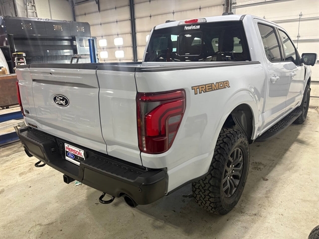 White Metallic 2025 Ford F-150 Tremor 4WD 10-Speed Automatic 3.5L V6 EcoBoost 4WD. Price includes $1,000 discount requires trade-in of 2014 model year or newer vehicle in good physical & mechanical condition with <150k miles on it.