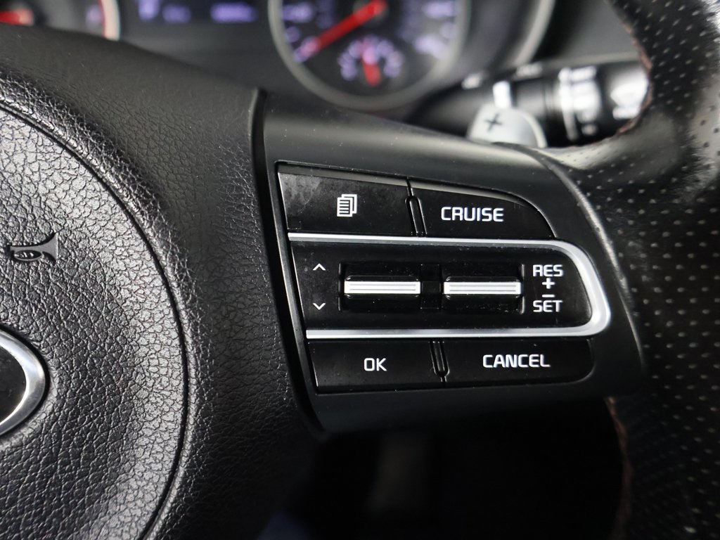| Red Interior Color Package | | Sun & Sound Package | | 6 Speakers | | AM/FM radio: SiriusXM | | Radio: AM/FM/MP3/HD/SiriusXM Audio System | | Radio: AM/FM/MP3/HD/SiriusXM harman/kardon Audio | | Air Conditioning | | Automatic temperature control | | Front dual zone A/C | | Rear air conditioning | | Rear window defroster | | 8-Way Power Adjustable Passenger Seat | | Power driver seat | | Power steering | | Power windows | | Remote keyless entry | | Steering wheel mounted audio controls | | Four wheel independent suspension | | Traction control | | 4-Wheel Disc Brakes | | ABS brakes | | Anti-whiplash front head restraints | | Dual front impact airbags | | Dual front side impact airbags | | Emergency communication system: UVO eServices | | Front anti-roll bar | | Knee airbag | | Low tire pressure warning | | Occupant sensing airbag | | Overhead airbag | | Rear anti-roll bar | | Power Sunroof | | Brake assist | | Electronic Stability Control | | Exterior Parking Camera Rear | | Delay-off headlights | | Fully automatic headlights | | Panic alarm | | Security system | | Speed control | | Bumpers: body-color | | Heated door mirrors | | Power door mirrors | | Turn signal indicator mirrors | | Apple CarPlay & Android Auto | | Auto-dimming Rear-View mirror w/HomeLink® | | Carpeted Floor Mat | | Driver door bin | | Driver vanity mirror | | Front reading lights | | Illuminated entry | | Outside temperature display | | Overhead console | | Passenger vanity mirror | | Rear reading lights | | Rear seat center armrest | | Red Leather Seat Trim | | Sport steering wheel | | Tachometer | | Trip computer | | Front Bucket Seats | | Front Center Armrest | | Heated Front Bucket Seats | | Heated front seats | | Leather Seat Trim | | Split folding rear seat | | Passenger door bin | | Alloy wheels | | Wheels: 18'' x 8.0 Alloy | | Speed-Sensitive Wipers | | Variably intermittent wipers | | Blind spot warning | | Rear parking sensors | | Keyless start | | Wireless charger |