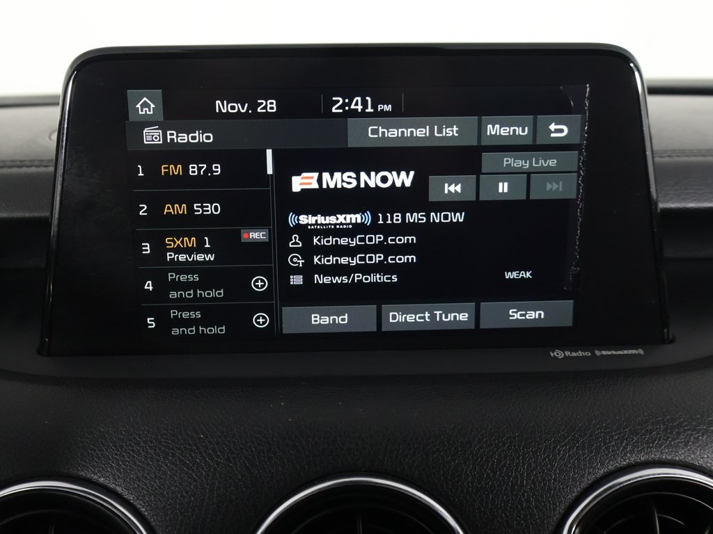 8-Way Power Adjustable Passenger Seat, Apple CarPlay & Android Auto, Automatic temperature control, Delay-off headlights, Exterior Parking Camera Rear, Front dual zone A/C, Fully automatic headlights, Heated Front Bucket Seats, Power Sunroof, Radio: AM/FM/MP3/HD/SiriusXM harman/kardon Audio, Rear air conditioning, Red Interior Color Package, Red Leather Seat Trim, Sun & Sound Package, Wheels: 18'' x 8.0 Alloy, 4-Wheel Disc Brakes, 6 Speakers, ABS brakes, Air Conditioning, Alloy wheels, AM/FM radio: SiriusXM, Anti-whiplash front head restraints, Auto-dimming Rear-View mirror w/HomeLink®, Brake assist, Bumpers: body-color, Carpeted Floor Mat, Driver door bin, Driver vanity mirror, Dual front impact airbags, Dual front side impact airbags, Electronic Stability Control, Emergency communication system: UVO eServices, Four wheel independent suspension, Front anti-roll bar, Front Bucket Seats, Front Center Armrest, Front reading lights, Heated door mirrors, Heated front seats, Illuminated entry, Knee airbag, Leather Seat Trim, Low tire pressure warning, Occupant sensing airbag, Outside temperature display, Overhead airbag, Overhead console, Panic alarm, Passenger door bin, Passenger vanity mirror, Power door mirrors, Power driver seat, Power steering, Power windows, Radio: AM/FM/MP3/HD/SiriusXM Audio System, Rear anti-roll bar, Rear reading lights, Rear seat center armrest, Rear window defroster, Remote keyless entry, Security system, Speed control, Speed-Sensitive Wipers, Split folding rear seat, Sport steering wheel, Steering wheel mounted audio controls, Tachometer, Traction control, Trip computer, Turn signal indicator mirrors, Variably intermittent wipers, Blind spot warning, Rear parking sensors, Keyless start, Wireless charger, 8-Way Power Adjustable Passenger Seat, Apple CarPlay & Android Auto, Automatic temperature control, Delay-off headlights, Exterior Parking Camera Rear, Front dual zone A/C, Fully automatic headlights, Heated Front Bucket Seats, Power Sunroof, Radio: AM/FM/MP3/HD/SiriusXM harman/kardon Audio, Rear air conditioning, Red Interior Color Package, Red Leather Seat Trim, Sun & Sound Package, Wheels: 18'' x 8.0 Alloy.