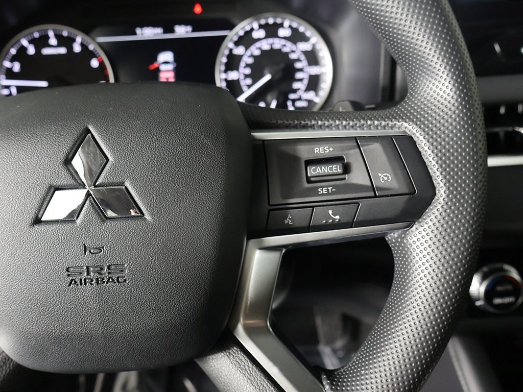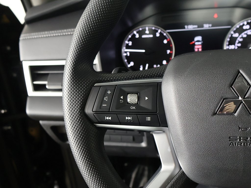 | Navigation System | | 8 Speakers | | AM/FM radio: SiriusXM | | Radio data system | | Radio: AM/FM 12.3'' Navigation w/Smartphone-Link | | Air Conditioning | | Automatic temperature control | | Front dual zone A/C | | Rear window defroster | | Power steering | | Power windows | | Remote keyless entry | | Steering wheel mounted audio controls | | Four wheel independent suspension | | Traction control | | 4-Wheel Disc Brakes | | ABS brakes | | Dual front impact airbags | | Dual front side impact airbags | | Emergency communication system: Mitsubishi Connect w/ 24-month trial | | Front anti-roll bar | | Knee airbag | | Low tire pressure warning | | Occupant sensing airbag | | Overhead airbag | | Rear anti-roll bar | | Rear side impact airbag | | Blind Spot Warning | | Brake assist | | Electronic Stability Control | | Exterior Parking Camera Rear | | Rear Parking Sensors | | Auto High-beam Headlights | | Fully automatic headlights | | Headlight cleaning | | Panic alarm | | Security system | | Speed control | | Accessory Black Hood Badge | | Bumpers: body-color | | Power door mirrors | | Spoiler | | Turn signal indicator mirrors | | Android Auto & Apple CarPlay | | Auto-dimming Rear-View mirror | | Driver door bin | | Driver vanity mirror | | Front reading lights | | Illuminated entry | | Outside temperature display | | Overhead console | | Passenger vanity mirror | | Rear seat center armrest | | Tachometer | | Telescoping steering wheel | | Tilt steering wheel | | Trip computer | | 3rd row seats: split-bench | | Cloth Fabric Seating Surfaces | | Front Bucket Seats | | Heated Front Bucket Seats | | Heated front seats | | Reclining 3rd row seat | | Split folding rear seat | | Front Center Armrest w/Storage | | Passenger door bin | | 18'' Alloy Wheels | | Rear window wiper | | Speed-Sensitive Wipers | | Variably intermittent wipers | | Forward collision alert | | Keyless start | | Yamaha premium sound |