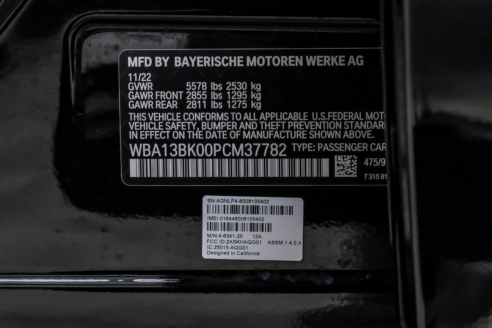 VIN #: WBA13BK00PCM37782