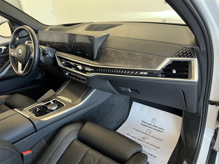 Black Premium Synthetic, 10 Speakers, 3.39 Axle Ratio, 4-Wheel Disc Brakes, ABS brakes, Adaptive Full LED Lights w/Cornering Lights, Air Conditioning, Alloy wheels, AM/FM radio: SiriusXM with 360L, AM/FM Stereo, Apple CarPlay & Android Auto Compatibility, Apple CarPlay Compatibility, Auto High-beam Headlights, Auto tilt-away steering wheel, Auto-dimming door mirrors, Auto-dimming Rear-View mirror, Automatic temperature control, BMW Assist eCall, BMW TeleServices, Brake assist, Bumpers: body-color, Compass, Connected Package Pro, ConnectedDrive Services, Delay-off headlights, Driver door bin, Driver vanity mirror, Dual front impact airbags, Dual front side impact airbags, Electronic Stability Control, Emergency communication system: BMW Assist eCall, Exterior Parking Camera Rear, Four wheel independent suspension, Front anti-roll bar, Front Bucket Seats, Front Center Armrest, Front dual zone A/C, Front reading lights, Fully automatic headlights, Garage door transmitter, Genuine wood console insert, Genuine wood dashboard insert, Genuine wood door panel insert, Gesture Control, harman/kardon Surround Sound System, Head restraints memory, Heated door mirrors, Heated Front Seats, Heated front seats, Heated Front Seats, Armrests & Steering Wheel, Hi-Fi Sound System, Illuminated entry, Knee airbag, Leather Shift Knob, Leather steering wheel, Live Cockpit Pro, Low tire pressure warning, Lumbar Support, Memory seat, Navigation, Navigation System, Occupant sensing airbag, Outside temperature display, Overhead airbag, Panic alarm, Passenger door bin, Passenger vanity mirror, Personal eSIM 5G, Power adjustable front head restraints, Power door mirrors, Power driver seat, Power Front Seats, Power moonroof, Power passenger seat, Power steering, Power windows, Premium Package, Radio data system, Rain sensing wipers, Rear anti-roll bar, Rear reading lights, Rear seat center armrest, Rear window defroster, Rear window wiper, Remote Engine Start, Remote keyless entry, Security system, Sensafin Upholstery, SiriusXM w/360L, Speed control, Speed-sensing steering, Speed-Sensitive Wipers, Split folding rear seat, Spoiler, Sport Seats, Sport steering wheel, Steering wheel mounted audio controls, Tachometer, Telescoping steering wheel, Tilt steering wheel, Traction control, Trailer Hitch, Trip computer, Turn signal indicator mirrors, Variably intermittent wipers, Wheels: 20 x 9 V-Spoke (Style 738), Wireless Device Charging. Odometer is 6684 miles below market average! 23/27 City/Highway MPG Priced below KBB Fair Purchase Price! Mineral White Metallic 2024 BMW X5 xDrive40i AWD 8-Speed Automatic Sport 3.0L I6 DOHC 24V Pricing - Although every effort has been made to ensure the accuracy of the information contained on this site, absolute accuracy cannot be guaranteed. Dealer is not responsible for errors and omissions. All vehicles are subject to prior sale. The advertised price is reflective after a 20% down payment and does not include applicable state sales tax, title, state registration fees, or electronic service charge of $899.00 doc fee. (These charges represent costs and profits to the dealer for items such as inspecting, cleaning and adjusting vehicles and preparing documents related to the sale).The internet price is subject to change. See dealer website for up-to-date pricing and down payment options. ALL PRE-OWNED models are Pre-Certified and can be certified for an additional cost of ($3495 - $7995) depending on the YEAR, MAKE, MODEL AND MILEAGE, a vehicle that passes a Multipoint Inspection can be certified for an additional cost. There is an additional RECONDITIONING/PRE DELIVERY INSPECTION CHARGE ($2695) in addition to all pricing. All internet pricing excludes an optional DGL Motors Advantage Program (3 months limited warranty coverage, 1 year maintenance coverage, and appearance protection) for ($2995) Some High Line cars do not qualify. Dealer not responsible for misprints. Due to the high demand for our individually selected vehicle inventory, there may be times that an individual vehicle is on longer available at the time you arrive at the Dealership. This is due to a time delay between posting the vehicle, its actual sale and delivery and removal from the website. Posting, sale and delivery of all pre-owned vehicles is an evolving process. Sometimes displayed vehicles may still not be available for a variety of reasons: such as, subject to prior sale; removal and transport elsewhere, awaiting title and ownership confirmation. TO TAKE ADVANTAGE OF OUR SPECIAL INTERNET DISCOUNTS Y