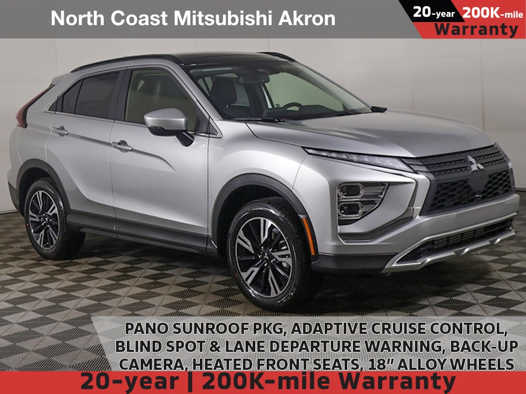 Accessory Eclipse Cross Scuff Plates, Accessory Metal Cargo Scuff Plates, Android Auto & Apple CarPlay, Auto High-beam Headlights, Automatic temperature control, Black Roof Rails, Blind Spot Warning, Exterior Parking Camera Rear, Front dual zone A/C, Front fog lights, Fully automatic headlights, Heated front seats, Panoramic Sunroof Package, Panoramic Sunroof Package (P1), Power driver seat, Power Liftgate, Power Panoramic Sunroof, Wheels: 18'' x 7J Two-Tone Alloy, 4-Wheel Disc Brakes, 6 Speakers, ABS brakes, Air Conditioning, Alloy wheels, AM/FM radio: SiriusXM, Auto-dimming Rear-View mirror w/HomeLink®, Brake assist, Bumpers: body-color, Delay-off headlights, Driver door bin, Driver vanity mirror, Dual front impact airbags, Dual front side impact airbags, Electronic Stability Control, Emergency communication system, Four wheel independent suspension, Front anti-roll bar, Front Bucket Seats, Front Center Armrest, Front reading lights, Heated door mirrors, Heated Front Bucket Seats, Illuminated entry, Knee airbag, Low tire pressure warning, Occupant sensing airbag, Outside temperature display, Overhead airbag, Overhead console, Panic alarm, Passenger door bin, Passenger vanity mirror, Power door mirrors, Power steering, Power windows, Radio data system, Radio: AM/FM 8.0'' Smartphone-Link Display Audio, Rain sensing wipers, Rear anti-roll bar, Rear seat center armrest, Rear window defroster, Rear window wiper, Remote keyless entry, Security system, Speed control, Speed-sensing steering, Split folding rear seat, Spoiler, Steering wheel mounted audio controls, Tachometer, Telescoping steering wheel, Tilt steering wheel, Traction control, Trip computer, Turn signal indicator mirrors, Variably intermittent wipers, Keyless start, Forward collision warning, Adaptive cruise control, Lane departure warning, Power folding side mirrors, Accessory Eclipse Cross Scuff Plates, Accessory Metal Cargo Scuff Plates, Android Auto & Apple CarPlay, Auto High-beam Headlights, Automatic temperature control, Black Roof Rails, Blind Spot Warning, Exterior Parking Camera Rear, Front dual zone A/C, Front fog lights, Fully automatic headlights, Heated front seats, Panoramic Sunroof Package, Panoramic Sunroof Package (P1), Power driver seat, Power Liftgate, Power Panoramic Sunroof, Wheels: 18'' x 7J Two-Tone Alloy.