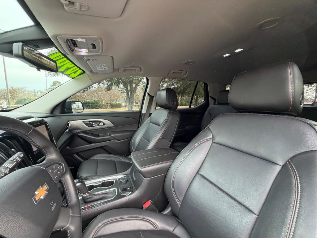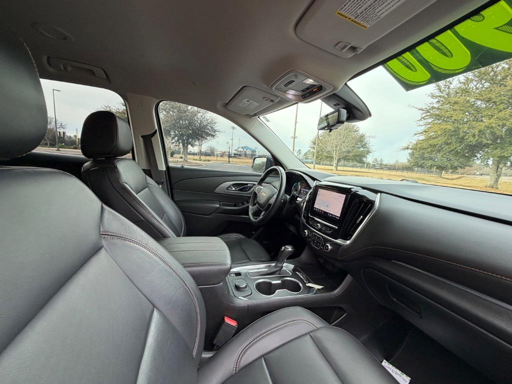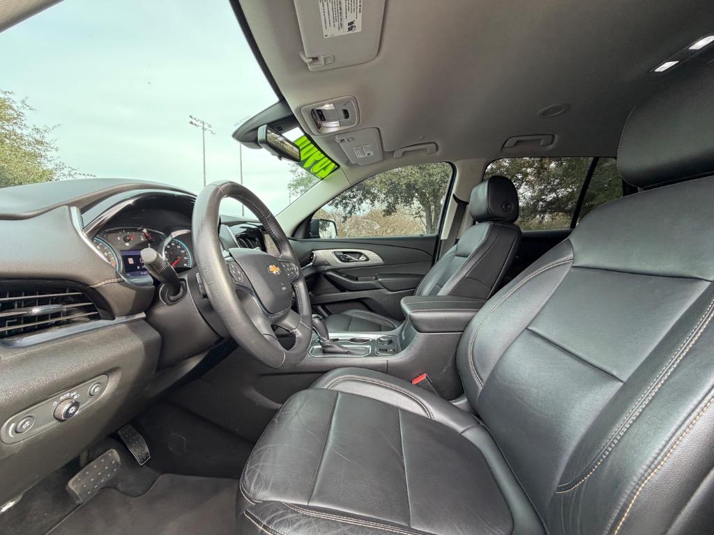 2020 CHEVROLET TRAVERSE LT. 3.6L V6. ALL WHEEL DRIVE. CARFAX CERTIFIED ACCIDENT FREE! 15 CARFAX CERTIFIED SERVICE HISTORY RECORDS. GRAPHITE METALLIC EXTERIOR. JET BLACK LEATHER INTERIOR. REMOTE ENGINE START. KEYLESS ENTRY. PUSH TO START ENGINE. LEATHER WRAPPED STEERING WHEEL W/ HANDS FREE TALK. AUDIO AND CRUISE CONTROLS. 8 INCH TOUCH DISPLAY SCREEN W/ NAVIGATION. 360° CAMERA. MEDIA HUB W/ BLUETOOTH. APPLE CAR PLAY (PREMIUM PACKAGE - $3,095.00). ANDROID AUTO. USB CONNECTION. BOSE PREMIUM 10 SPEAKER SURROUND SOUND SYSTEM. DUAL CLIMATE CONTROL. UNIVERSAL GARAGE OPENER. REAR VIEW MIRROR CAMERA VIEW. FRONT HEATED LEATHER BUCKET SEATS. REAR CLIMATE CONTROL. SECOND ROW LEATHER BUCKET SEATS. REAR USB PORTS. THIRD ROW LEATHER BENCH SEAT. POWER LIFT GATE. CARGO STORAGE. REAR WINDSHIELD WIPER. TINTED WINDOWS. BLACK ROOF RAILS. COLOR KEYED DOOR HANDLES AND SIDE MIRRORS W/ BLIND SPOT MONITORING. BLACK AND CHROME FRONT GRILLE. GOOD YEAR TIRES. 20 INCH CHEVROLET FACTORY WHEELS.