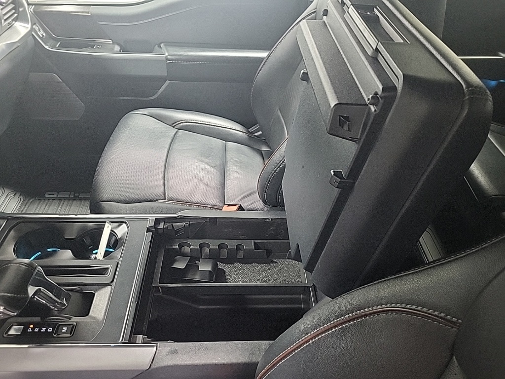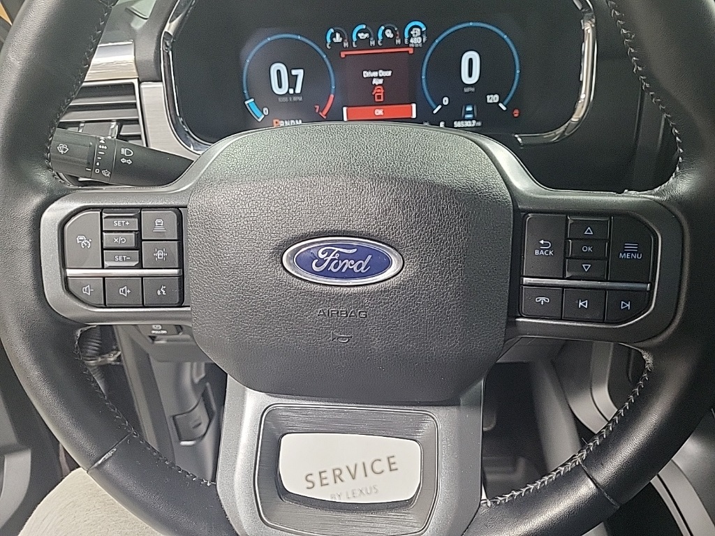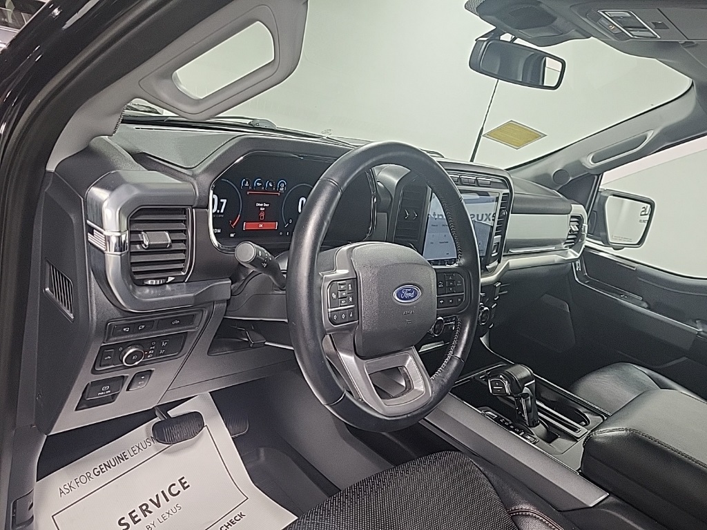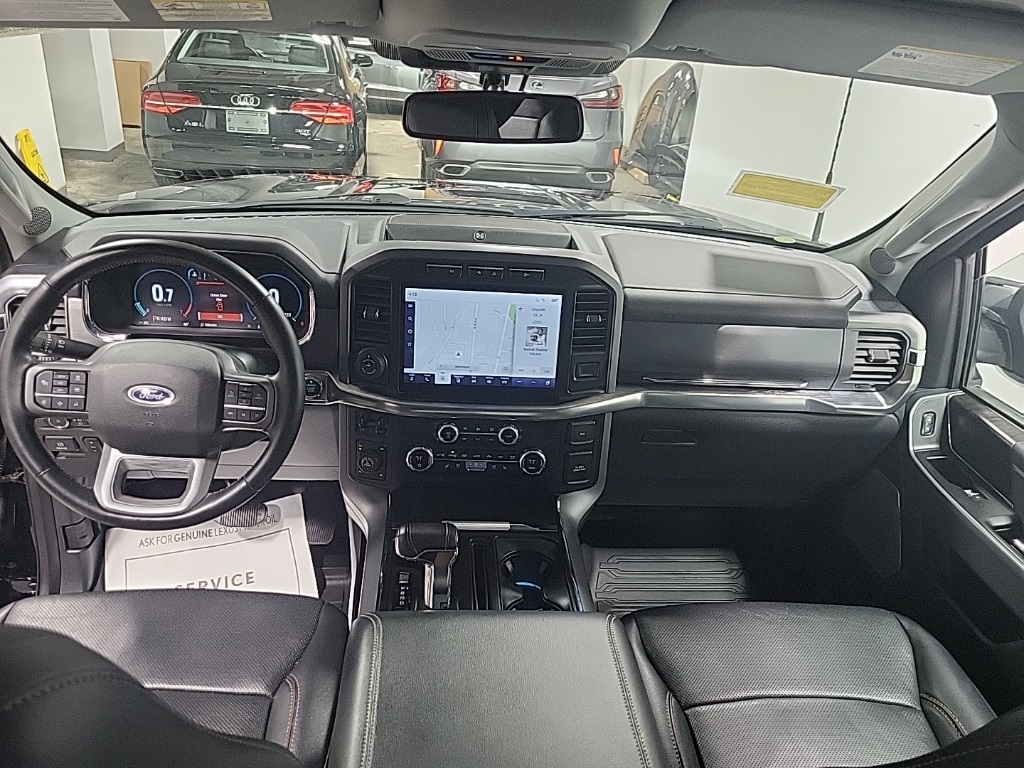 | Navigation system: Connected Navigation (90-Day Trial) | | Equipment Group 501A Mid | | Ford Co-Pilot360 Assist 2.0 | | Lariat Chrome Appearance Package | | Trailer Tow Package | | 7 Speakers | | AM/FM radio: SiriusXM with 360L | | Radio data system | | Radio: AM/FM SiriusXM w/360L | | Radio: B&O Sound System by Bang & Olufsen | | Air Conditioning | | Automatic temperature control | | Front dual zone A/C | | Rear window defroster | | Memory seat | | Pedal memory | | Power driver seat | | Power steering | | Power windows | | Remote keyless entry | | Steering wheel mounted audio controls | | Universal Garage Door Opener | | Speed-sensing steering | | Traction control | | 4-Wheel Disc Brakes | | ABS brakes | | Dual front impact airbags | | Dual front side impact airbags | | Emergency communication system: SYNC 4 911 Assist | | Front anti-roll bar | | Front wheel independent suspension | | Low tire pressure warning | | Occupant sensing airbag | | Overhead airbag | | Brake assist | | Electronic Stability Control | | Exterior Parking Camera Rear | | Auto High-beam Headlights | | Delay-off headlights | | Front fog lights | | Fully automatic headlights | | Panic alarm | | Security system | | Intelligent Adaptive Cruise Control w/Stop & Go | | Speed control | | Auto Start-Stop Removal | | 6'' Chrome Running Board | | Auto-dimming door mirrors | | Bumpers: chrome | | Chrome 2-Bar Grille w/4 Minor Bars | | Chrome Door & Tailgate Handles w/Body-Color Bezel | | Chrome Single-Tip Exhaust | | Chrome Skull Caps on Exterior Mirrors | | Heated door mirrors | | LED Sideview Mirror Spotlights | | Plastic Drop-In Bedliner | | Power door mirrors | | Rear step bumper | | Turn signal indicator mirrors | | 360 Degree Camera | | Adjustable pedals | | Auto-dimming Rear-View mirror | | Compass | | Connected Built-In Navigation | | Driver door bin | | Driver vanity mirror | | Evasive Steering Assist | | Front reading lights | | Illuminated entry | | Intersection Assist | | Onboard 400W Outlet | | Outside temperature display | | Overhead console | | Passenger vanity mirror | | Rear reading lights | | Rear seat center armrest | | Speed Sign Recognition | | SYNC 4 w/Enhanced Voice Recognition | | Tachometer | | Telescoping steering wheel | | Tilt steering wheel | | Trip computer | | Voltmeter | | Heated front seats | | Leather-Trimmed 40/20/40 Front Seat | | Power passenger seat | | Split folding rear seat | | Ventilated front seats | | Extended Range 36 Gallon Fuel Tank | | Front Center Armrest w/Storage | | Passenger door bin | | Class IV Trailer Hitch Receiver | | Integrated Trailer Brake Controller | | Pro Trailer Backup Assist | | 18'' Machined-Aluminum Wheels | | Alloy wheels | | Wheels: 18'' Chrome-Like PVD | | Variably intermittent wipers |
