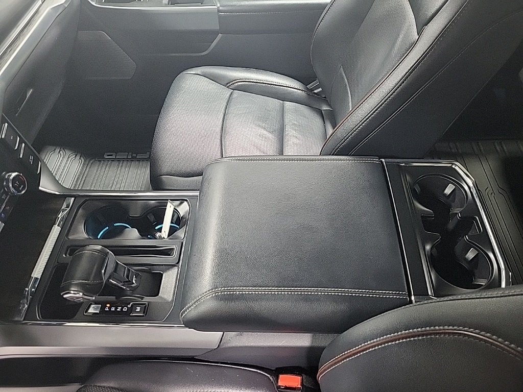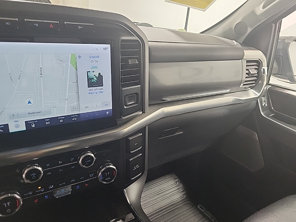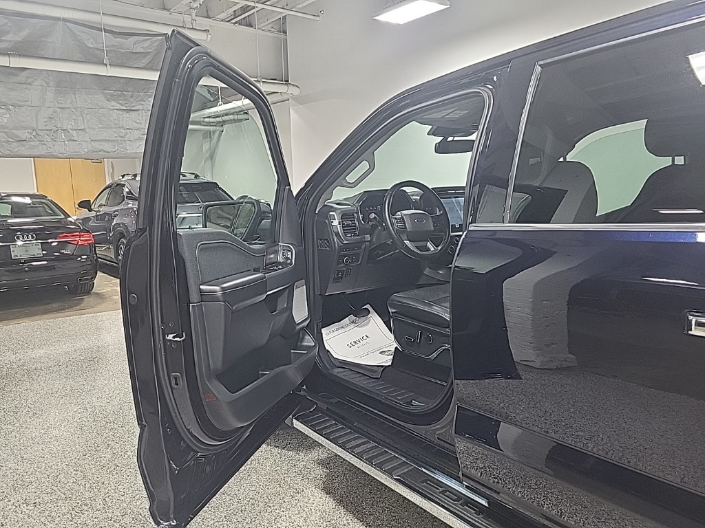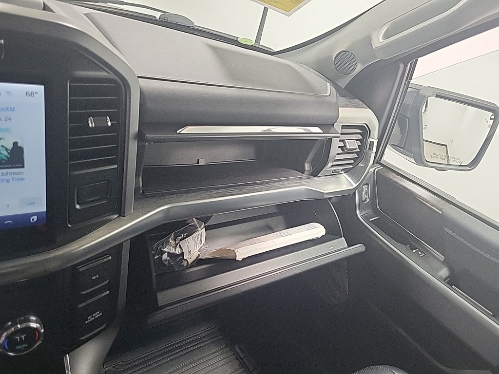 | Navigation system: Connected Navigation (90-Day Trial) | | Equipment Group 501A Mid | | Ford Co-Pilot360 Assist 2.0 | | Lariat Chrome Appearance Package | | Trailer Tow Package | | 7 Speakers | | AM/FM radio: SiriusXM with 360L | | Radio data system | | Radio: AM/FM SiriusXM w/360L | | Radio: B&O Sound System by Bang & Olufsen | | Air Conditioning | | Automatic temperature control | | Front dual zone A/C | | Rear window defroster | | Memory seat | | Pedal memory | | Power driver seat | | Power steering | | Power windows | | Remote keyless entry | | Steering wheel mounted audio controls | | Universal Garage Door Opener | | Speed-sensing steering | | Traction control | | 4-Wheel Disc Brakes | | ABS brakes | | Dual front impact airbags | | Dual front side impact airbags | | Emergency communication system: SYNC 4 911 Assist | | Front anti-roll bar | | Front wheel independent suspension | | Low tire pressure warning | | Occupant sensing airbag | | Overhead airbag | | Brake assist | | Electronic Stability Control | | Exterior Parking Camera Rear | | Auto High-beam Headlights | | Delay-off headlights | | Front fog lights | | Fully automatic headlights | | Panic alarm | | Security system | | Intelligent Adaptive Cruise Control w/Stop & Go | | Speed control | | Auto Start-Stop Removal | | 6'' Chrome Running Board | | Auto-dimming door mirrors | | Bumpers: chrome | | Chrome 2-Bar Grille w/4 Minor Bars | | Chrome Door & Tailgate Handles w/Body-Color Bezel | | Chrome Single-Tip Exhaust | | Chrome Skull Caps on Exterior Mirrors | | Heated door mirrors | | LED Sideview Mirror Spotlights | | Plastic Drop-In Bedliner | | Power door mirrors | | Rear step bumper | | Turn signal indicator mirrors | | 360 Degree Camera | | Adjustable pedals | | Auto-dimming Rear-View mirror | | Compass | | Connected Built-In Navigation | | Driver door bin | | Driver vanity mirror | | Evasive Steering Assist | | Front reading lights | | Illuminated entry | | Intersection Assist | | Onboard 400W Outlet | | Outside temperature display | | Overhead console | | Passenger vanity mirror | | Rear reading lights | | Rear seat center armrest | | Speed Sign Recognition | | SYNC 4 w/Enhanced Voice Recognition | | Tachometer | | Telescoping steering wheel | | Tilt steering wheel | | Trip computer | | Voltmeter | | Heated front seats | | Leather-Trimmed 40/20/40 Front Seat | | Power passenger seat | | Split folding rear seat | | Ventilated front seats | | Extended Range 36 Gallon Fuel Tank | | Front Center Armrest w/Storage | | Passenger door bin | | Class IV Trailer Hitch Receiver | | Integrated Trailer Brake Controller | | Pro Trailer Backup Assist | | 18'' Machined-Aluminum Wheels | | Alloy wheels | | Wheels: 18'' Chrome-Like PVD | | Variably intermittent wipers |
